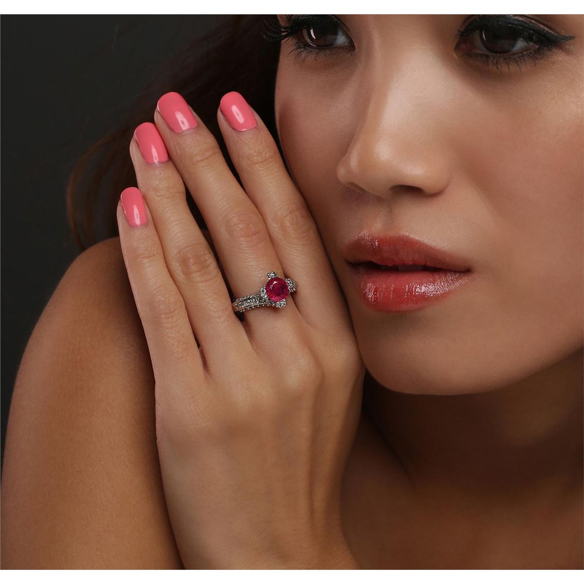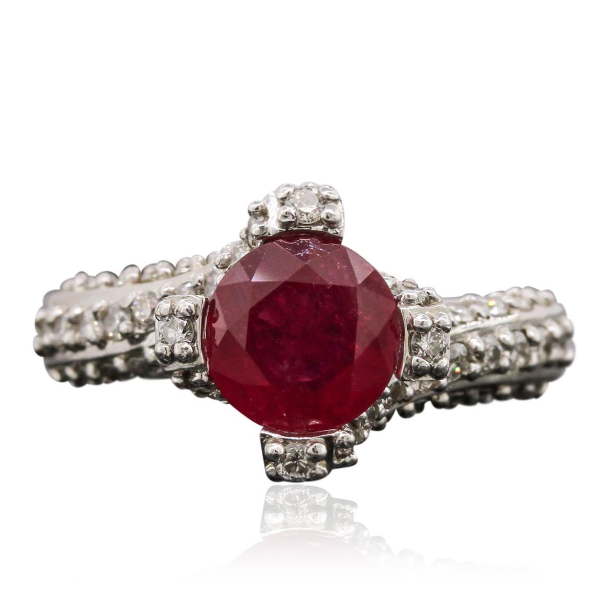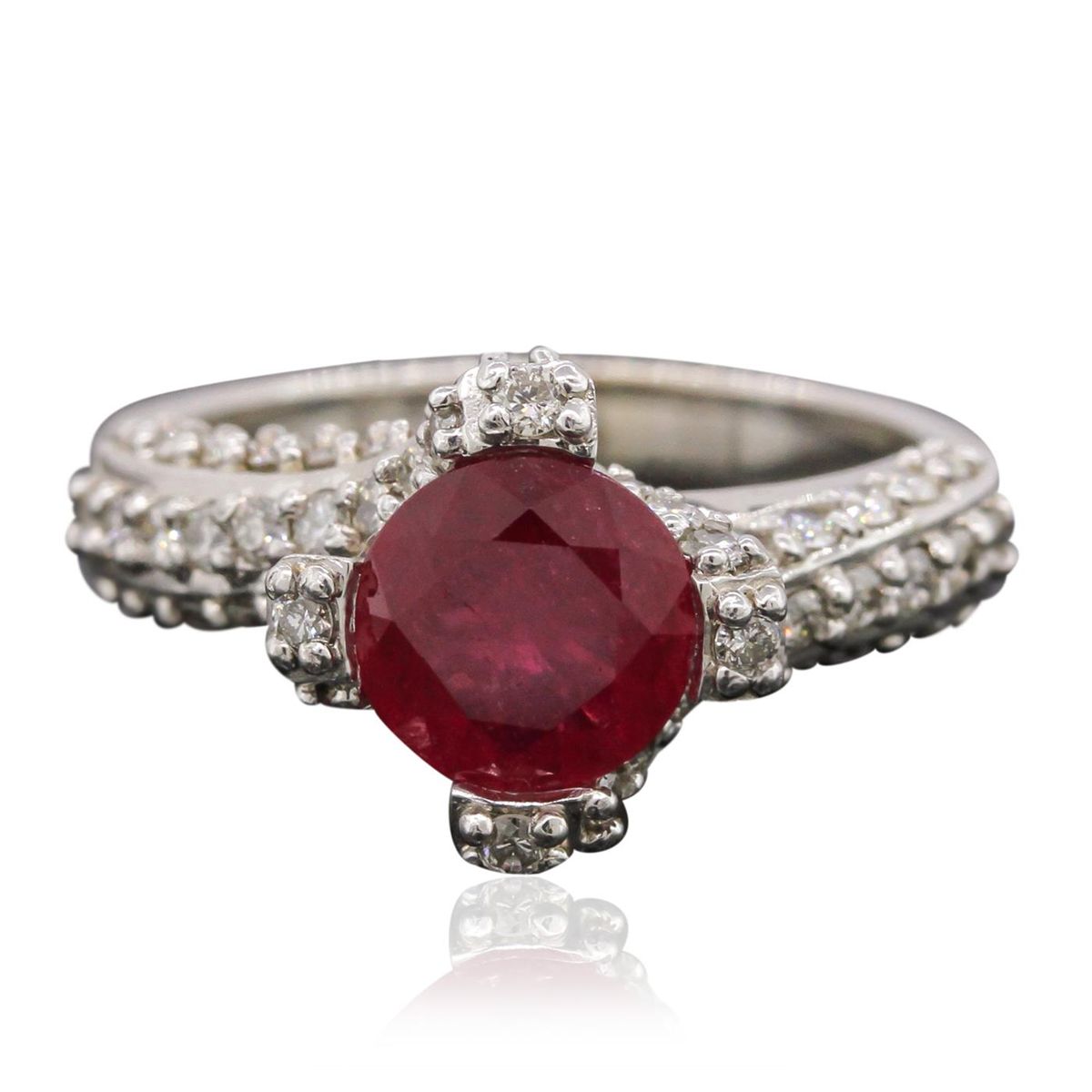 One ring featuring: 14KT white gold with a total weight of 7.20 grams, ruby with a total weight of 1.63ct, and diamonds with a total weight of 0.98ctw.