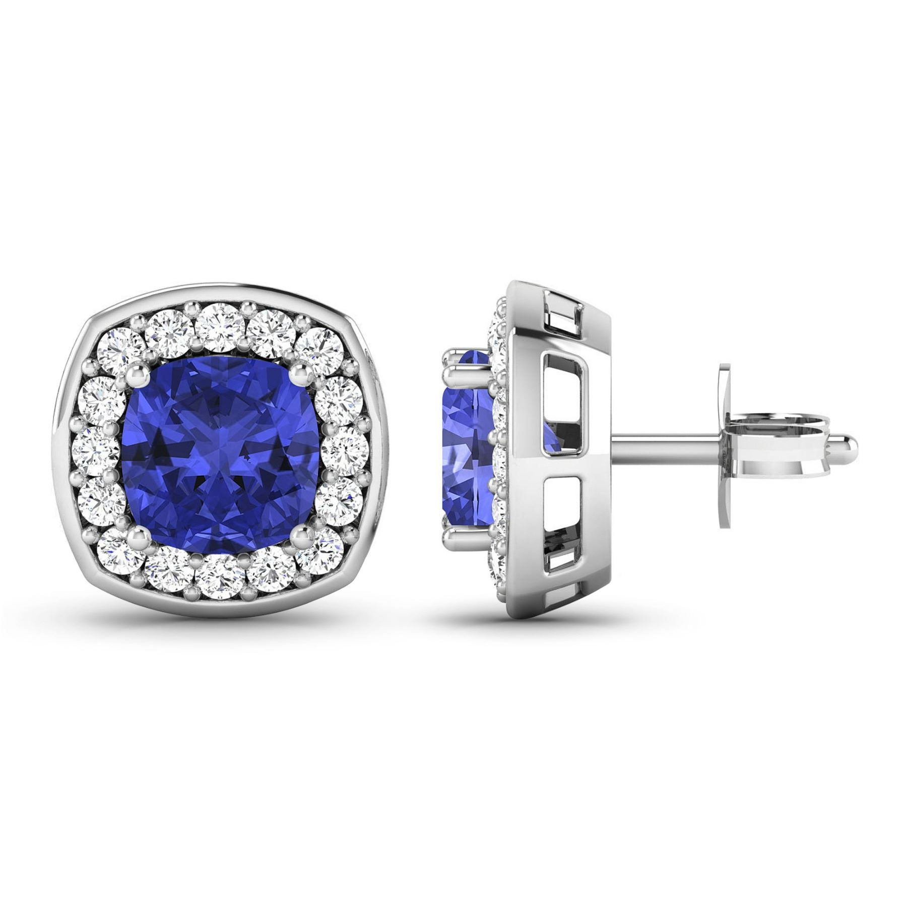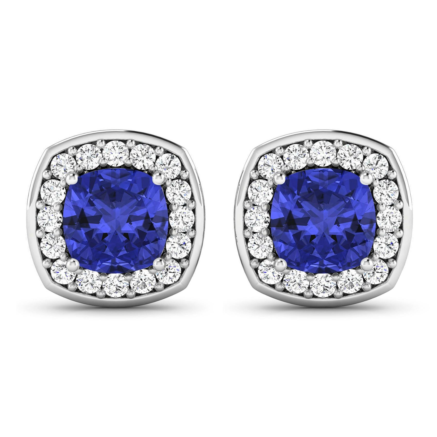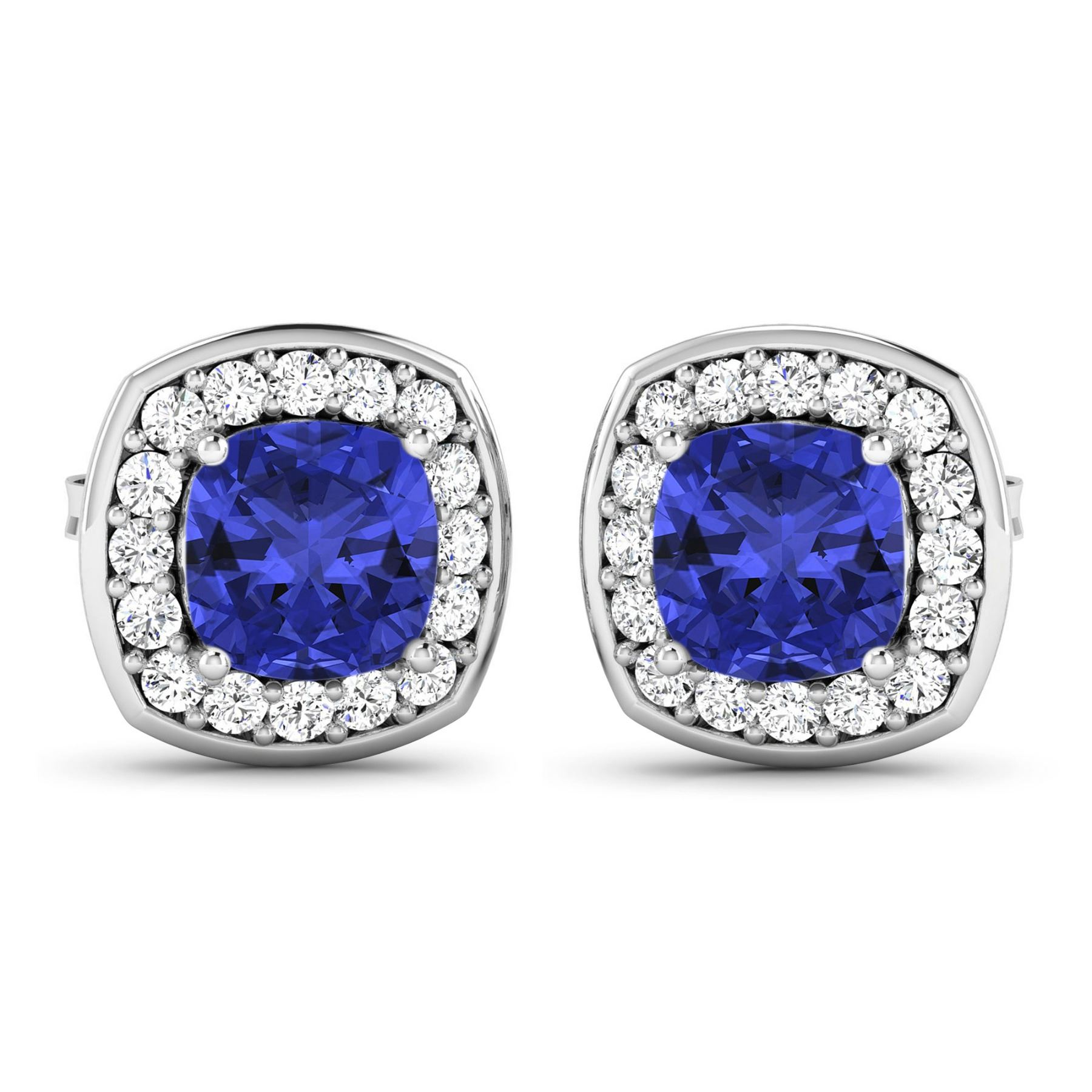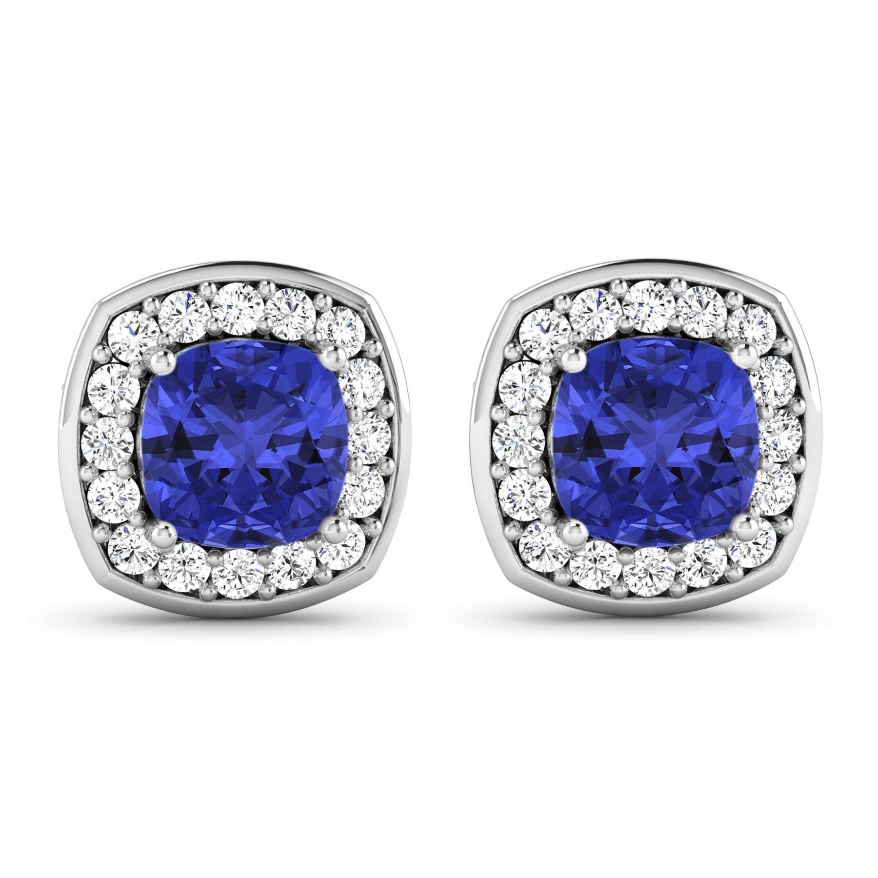 Tanzanite (AA+) Cushion 6.00mm - 2Pcs + White Diamond F/C Round 1.50mm - 32Pcs ( Diamond Quality : SI-2/HI ) ( Push Post ) Total weight of gemstones is 1.64cts. Total Diamond weight is 0.44cts. Total weight of these earrings are 2.98 grams.