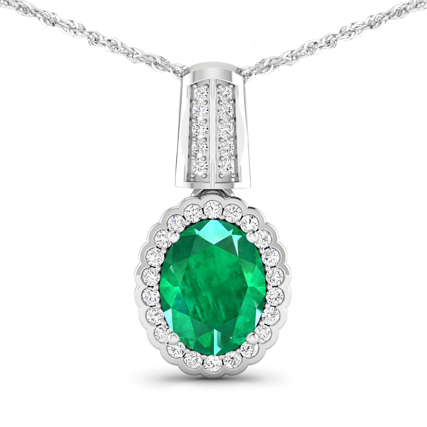 Zambian Emerald (AA) Oval 9x7mm - 1Pc + White Diamond F/C Round 1.20mm - 22Pcs + White Diamond F/C Round 1.00mm - 10Pcs (I1-I2/I color) Total weight of gemstone is 1.65cts. Total Diamond weight is 0.22cts. Total weight of this pendant is 2.31 grams.