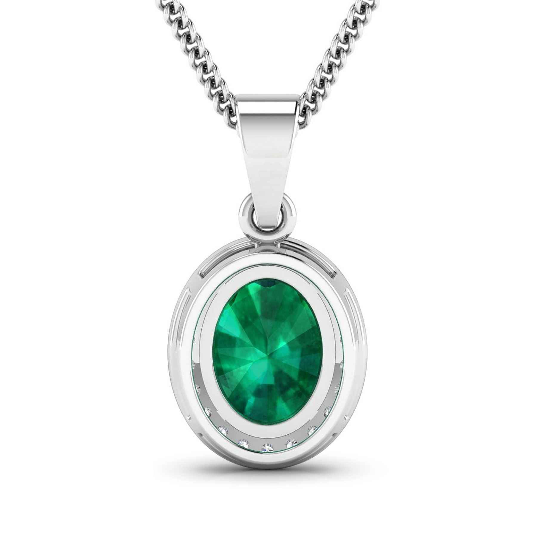 Zambian Emerald (AA) Oval 9x7mm - 1Pc + White Diamond F/C Round 1.30mm - 22Pcs (I1-I2/I color) Total weight of gemstone is 1.65cts. Total Diamond weight is 0.22cts. Total weight of this pendant is 1.73 grams.