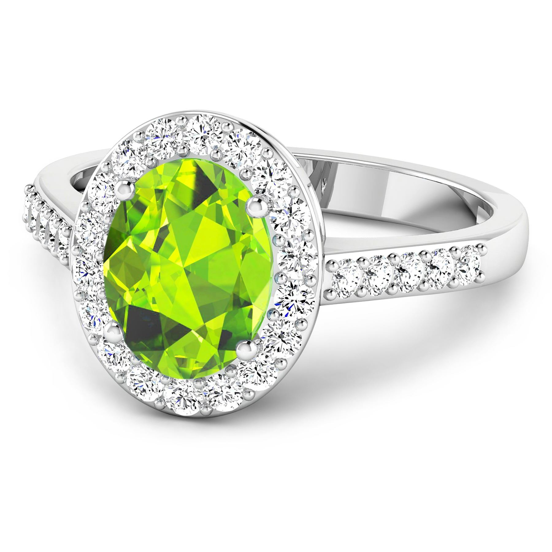 Peridot Oval 9x7mm - 1Pc + White Diamond F/C Round 1.50mm - 28Pcs ( SI-2/HI ) Total weight of gemstone is 1.6cts. Total Diamond weight is 0.39cts. Total weight of this ring is 2.71 grams. Ring size 7.