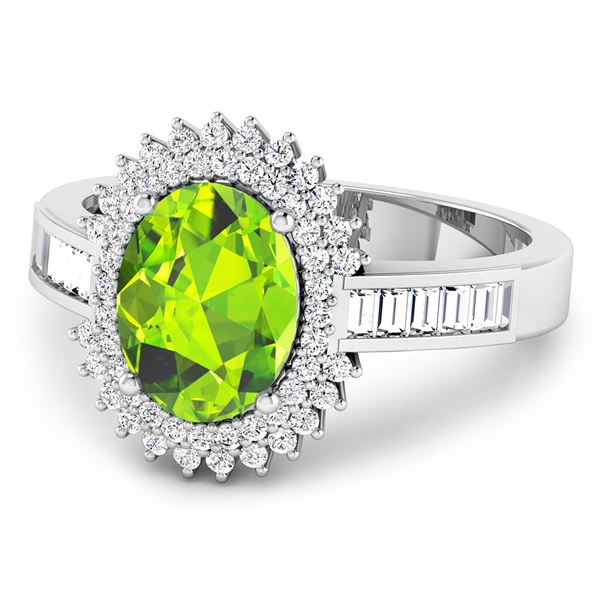 Peridot Oval 9x7mm - 1Pc + White Diamond Baguette 2.00x1.50mm - 10Pcs + White Diamond F/C Round 1.00... Show more..