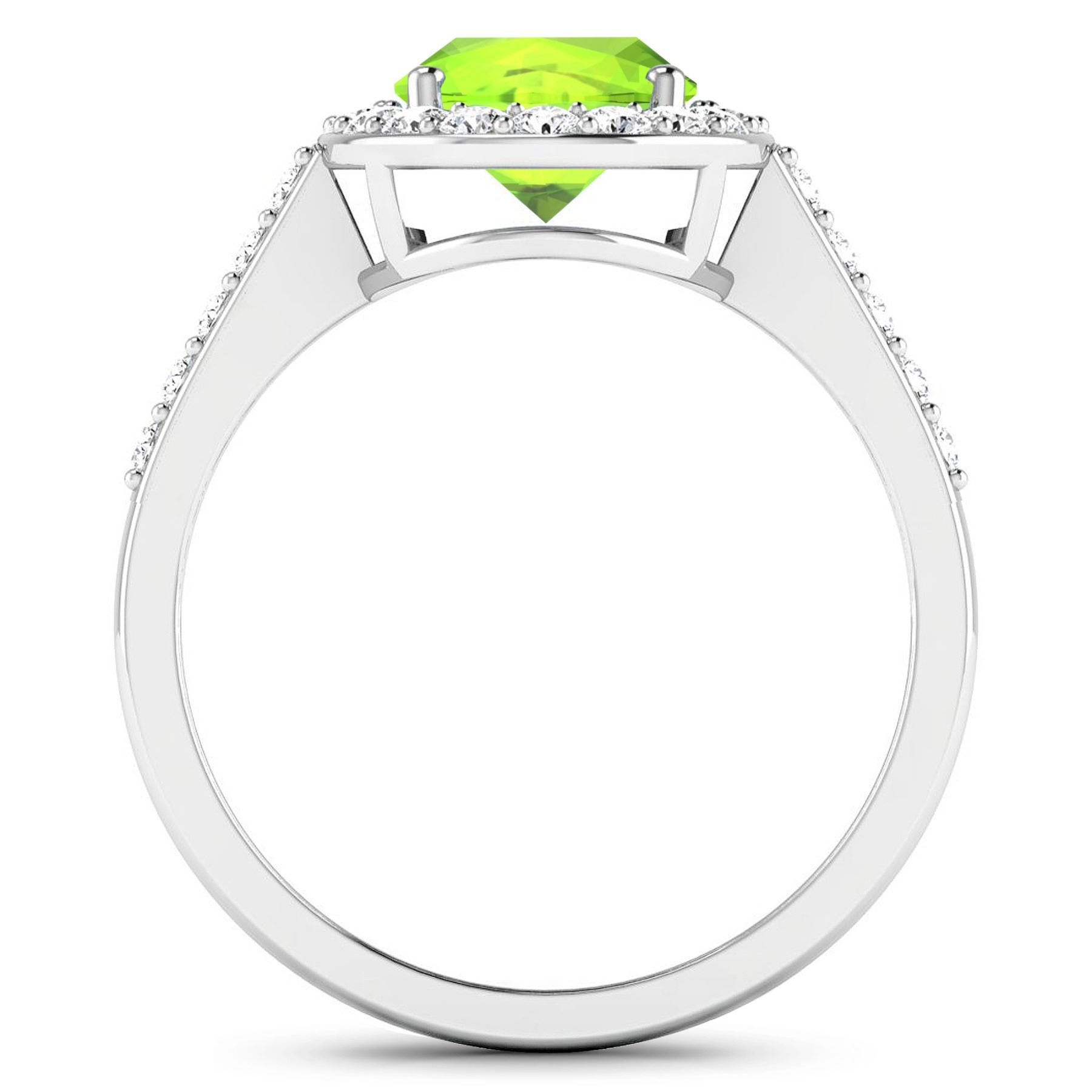 Peridot Oval 9x7mm - 1Pc + White Diamond F/C Round 1.50mm - 28Pcs ( SI-2/HI ) Total weight of gemstone is 1.6cts. Total Diamond weight is 0.39cts. Total weight of this ring is 2.71 grams. Ring size 7.