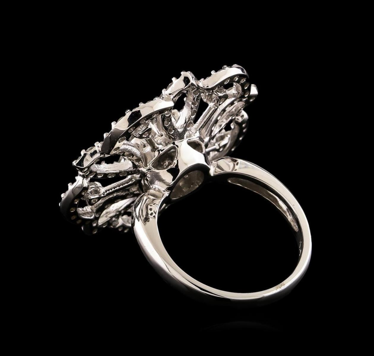 One electronically tested 14KT white gold ladies combination cast & assembled ring with a bright polish finish. Condition is new. Identified with markings of "K14". Containing: Twelve prong set round brilliant cut diamonds, measuring 3.60 - 2.10 x 1.71mm (depth est.) approximate. Total Weight of 12 Stones = 1.02ct. Clarity: SI-2 to I-1. Color: I - J, Cut is Good. Eighty-Five prong set round brilliant cut diamonds, measuring 1.30 - 1.30 x 0.78mm (depth est.) approximate. Total Weight of 85 Stones = 0.68ct. Clarity: I-1 to I-2. Color: I - J, Cut is Good. All diamonds are graded in the mounting, unless otherwise stated. Total Weight of Diamonds 1.70ct. Total Weight of Ring 9.80 grams. GGL Appraised.