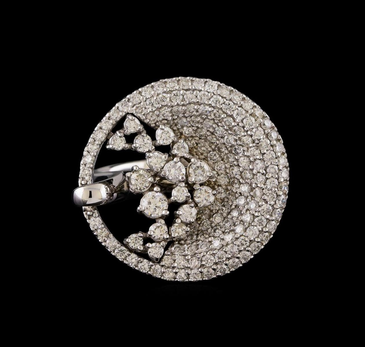 One electronically tested 14KT white gold ladies combination cast & assembled diamond ring with a bright polish finish. Identified with markings of "K14". Condition is new. Containing: One Hundred Forty-Eight prong set round brilliant cut diamonds, measuring 2.10 - 1.20 x 0.99mm (depth est.) approximate total weight of 148 Stones = 1.71ct. Clarity: SI-2 to I-2. Color: H - I, Cut is Good. All diamonds are graded in the mounting, unless otherwise stated. Total Weight of Diamonds 1.71ct. Total Weight of Ring 8.50 grams. GGL Appraised.