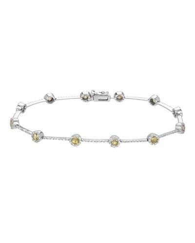 14KT White Gold 1.72ctw Yellow Sapphire and Diamond Bracelet. (12) Yellow Sapphires with a total weight of 1.72cts. (21) Round Diamonds with a total weight of 0.69cts with a color of I and clarity of I-1. Total length of this bracelet is 7 inches. Total weight of this bracelet is 6.64 grams.
