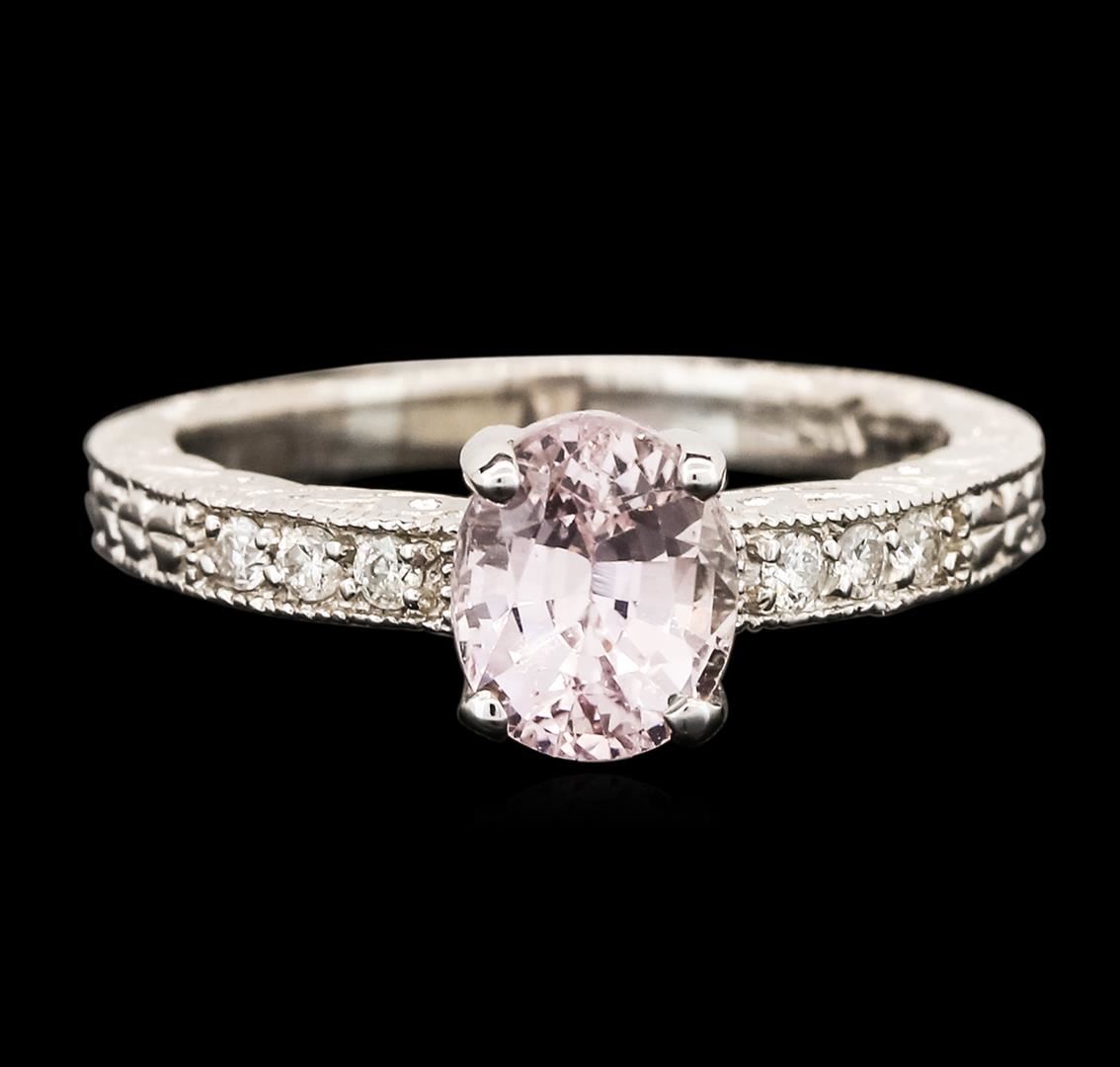 One ring featuring: 14KT white gold weighing 2.98 grams containing one padparadscha center stone with a total weight of 1.73ct and diamonds with a total weight of xct.
