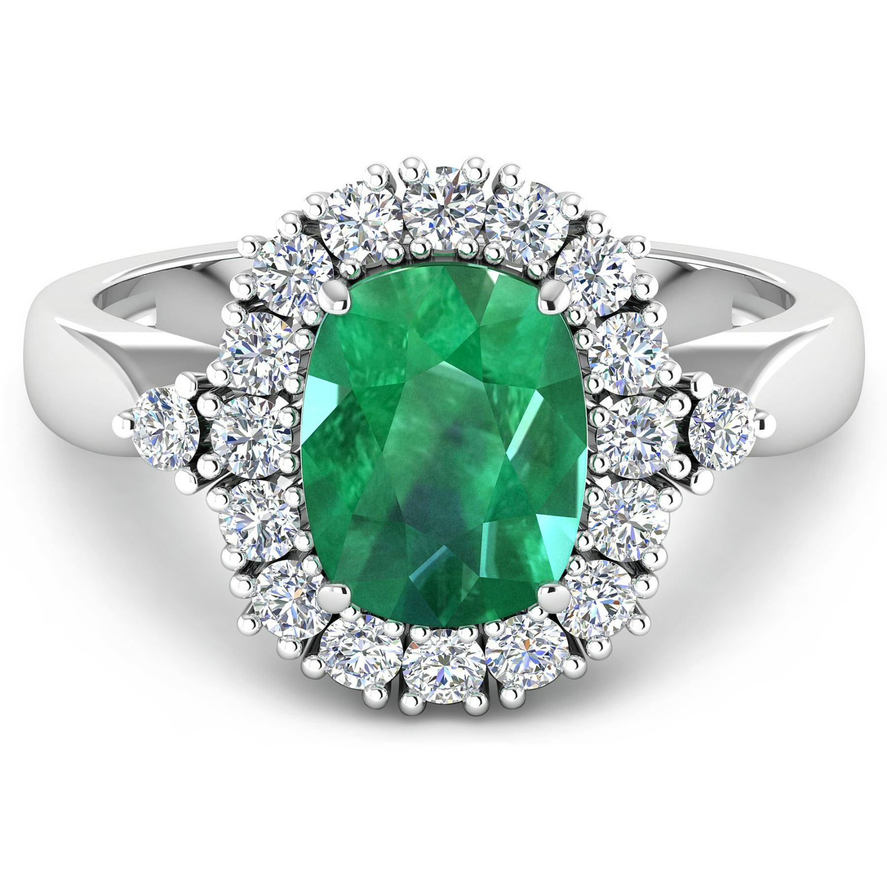 Zambian Emerald (AA) Cushion 9x7mm - 1Pc + White Diamond F/C Round 2.00mm - 18Pcs ( Diamond Quality : SI-2/HI ). Total weight of gemstone is 1.74cts. Total weight of Diamonds is 0.54cts. Total weight of this ring is 4.01 grams. Ring size 7.