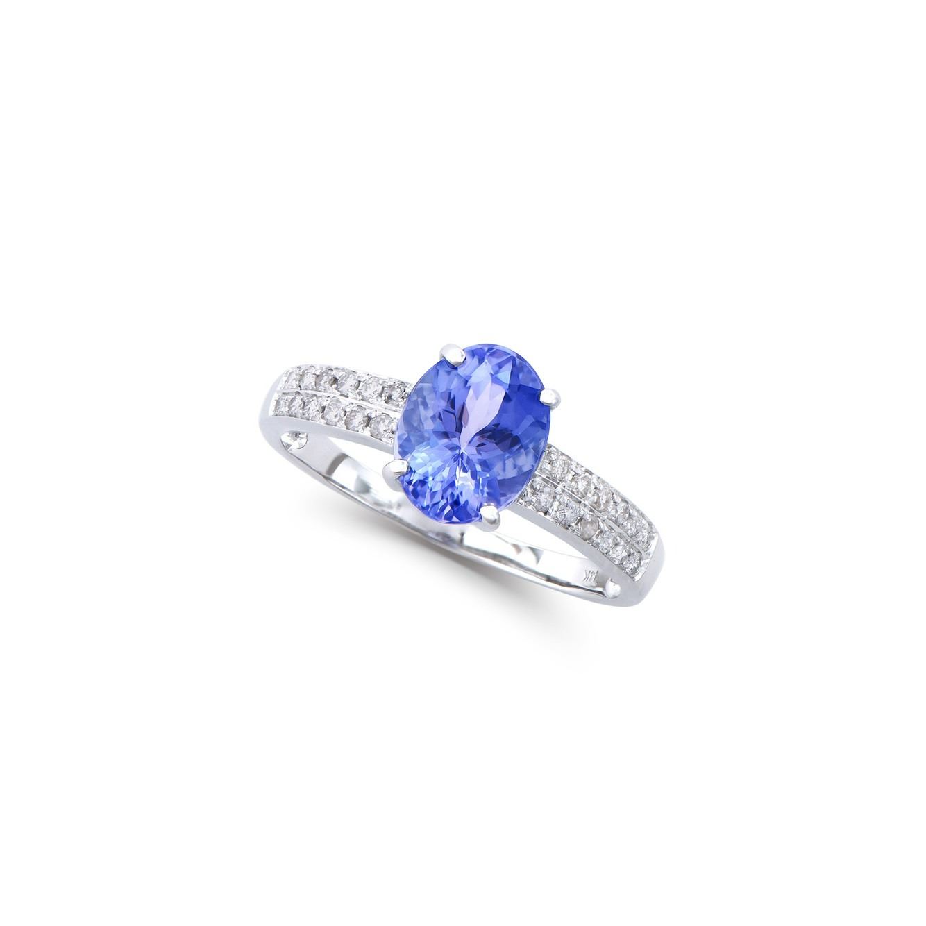(1) Tanzanite stone with a total weight of 1.75cts. (24) round Diamonds with a total weight of 0.20cts with a color of H-I and clarity of I1-I2. Total weight of the ring is 2.10 grams. Ring size 7.5.