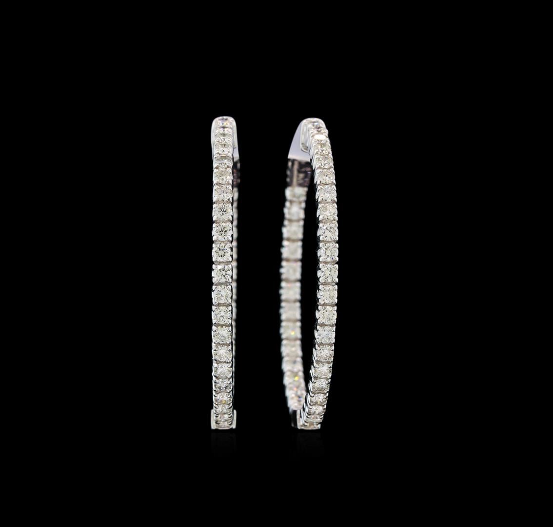 One electronically tested 14KT white gold ladies combination cast & assembled diamond hoop earrings with lever backs with a bright polish finish. Identified with markings of "14K". Condition is new. Containing: Seventy prong set round brilliant cut diamonds, measuring 1.90 - 1.90 x 1.14mm (depth est.) approximate total weight of 70 Stones = 1.76ct. Clarity: SI-1 to SI-2. Color: I - J, Cut is Good. Diamonds are graded in the mounting, unless otherwise stated. Total Weight of Diamonds 1.76ct. Total Weight of Hoop Earrings 8.70 grams. GGL Appraised at $4,090.00.