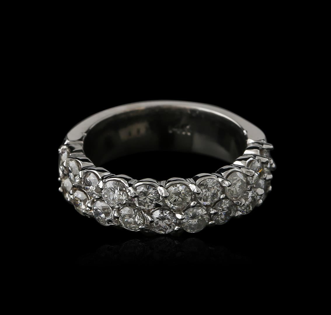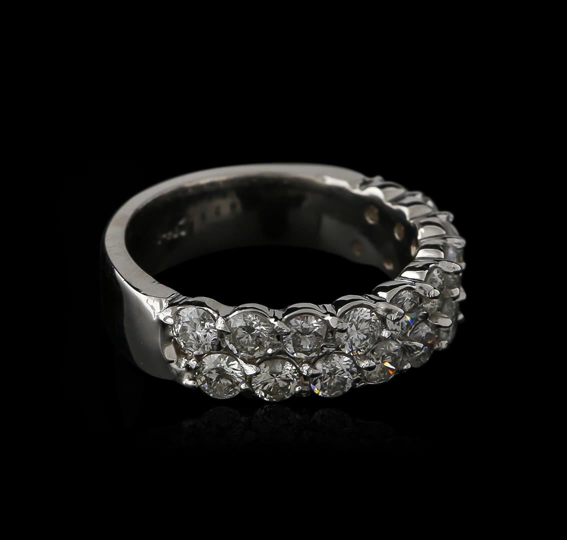 One electronically tested 14KT white gold ladies cast diamond ring with a flat shank with rounded edges with a bright polish finish. Identified with markings of "14K". Condition is new. Containing: Twenty prong set round brilliant cut diamonds, measuring 2.50 - 2.50 x 1.50mm (depth est.) approximate total weight of 20 Stones = 1.76ct. Clarity: SI-2 to I-2. Color: I - J, Cut is Good. Total Weight of Diamonds 1.76ct. Total Weight of Ring 6.80 grams. GGL Appraised at $3,305.00.