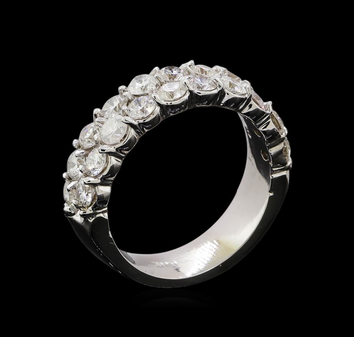 One electronically tested 14KT white gold ladies cast diamond ring with a flat shank with rounded edges with a bright polish finish. Identified with markings of "14K". Condition is new. Containing: Twenty prong set round brilliant cut diamonds, measuring 2.50 - 2.50 x 1.50mm (depth est.) approximate total weight of 20 Stones = 1.76ct. Clarity: SI-2 to I-2. Color: I - J, Cut is Good. Total Weight of Diamonds 1.76ct. Total Weight of Ring 6.80 grams. GGL Appraised at $3,305.00.