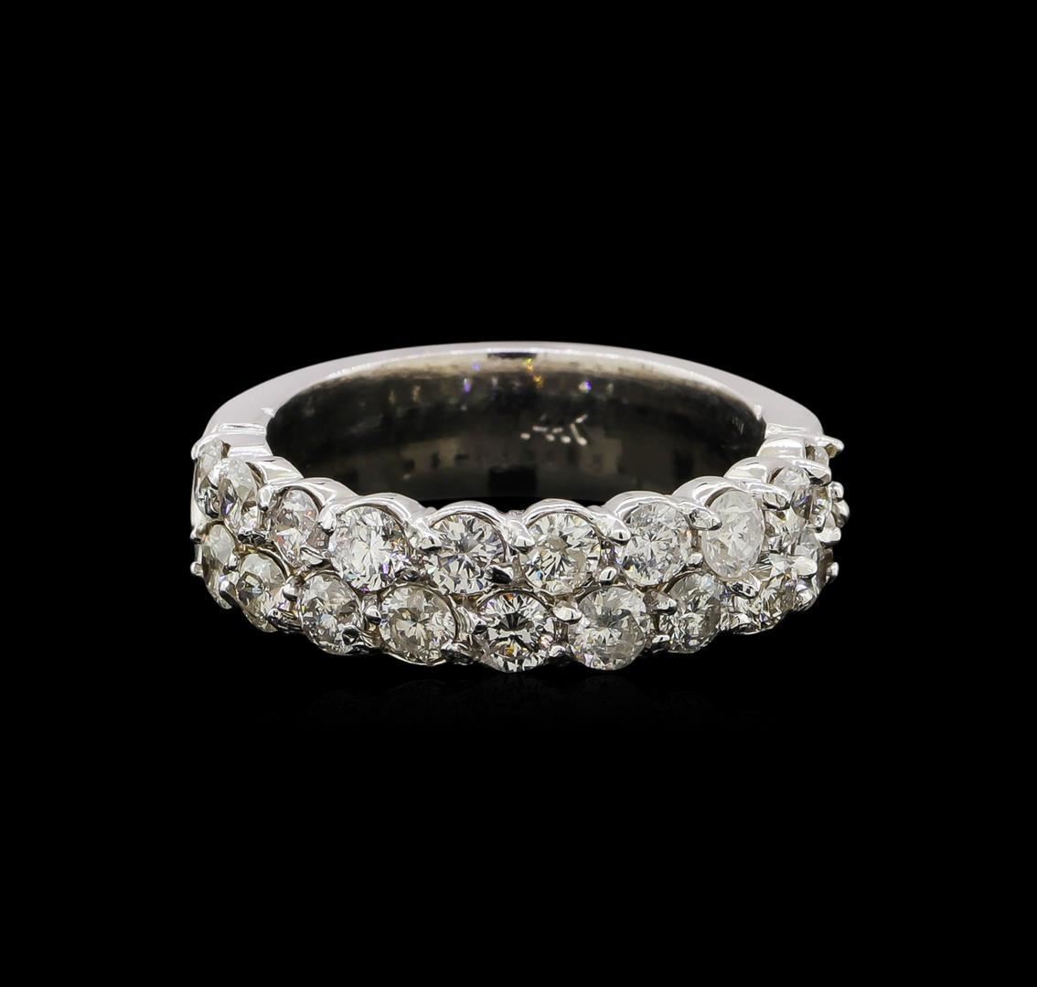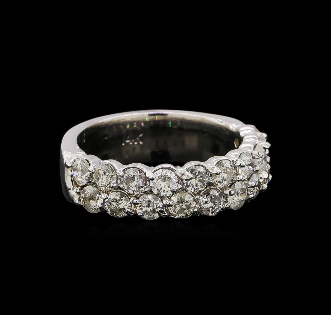 One electronically tested 14KT white gold ladies cast diamond ring with a flat shank with rounded edges with a bright polish finish. Identified with markings of "14K". Condition is new. Containing: Twenty prong set round brilliant cut diamonds, measuring 2.50 - 2.50 x 1.50mm (depth est.) approximate total weight of 20 Stones = 1.76ct. Clarity: SI-2 to I-2. Color: I - J, Cut is Good. Total Weight of Diamonds 1.76ct. Total Weight of Ring 6.80 grams. GGL Appraised.