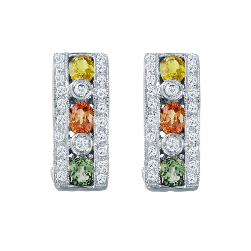 14KT White Gold 1.79ctw Multi Color Sapphire and Diamond Earrings
