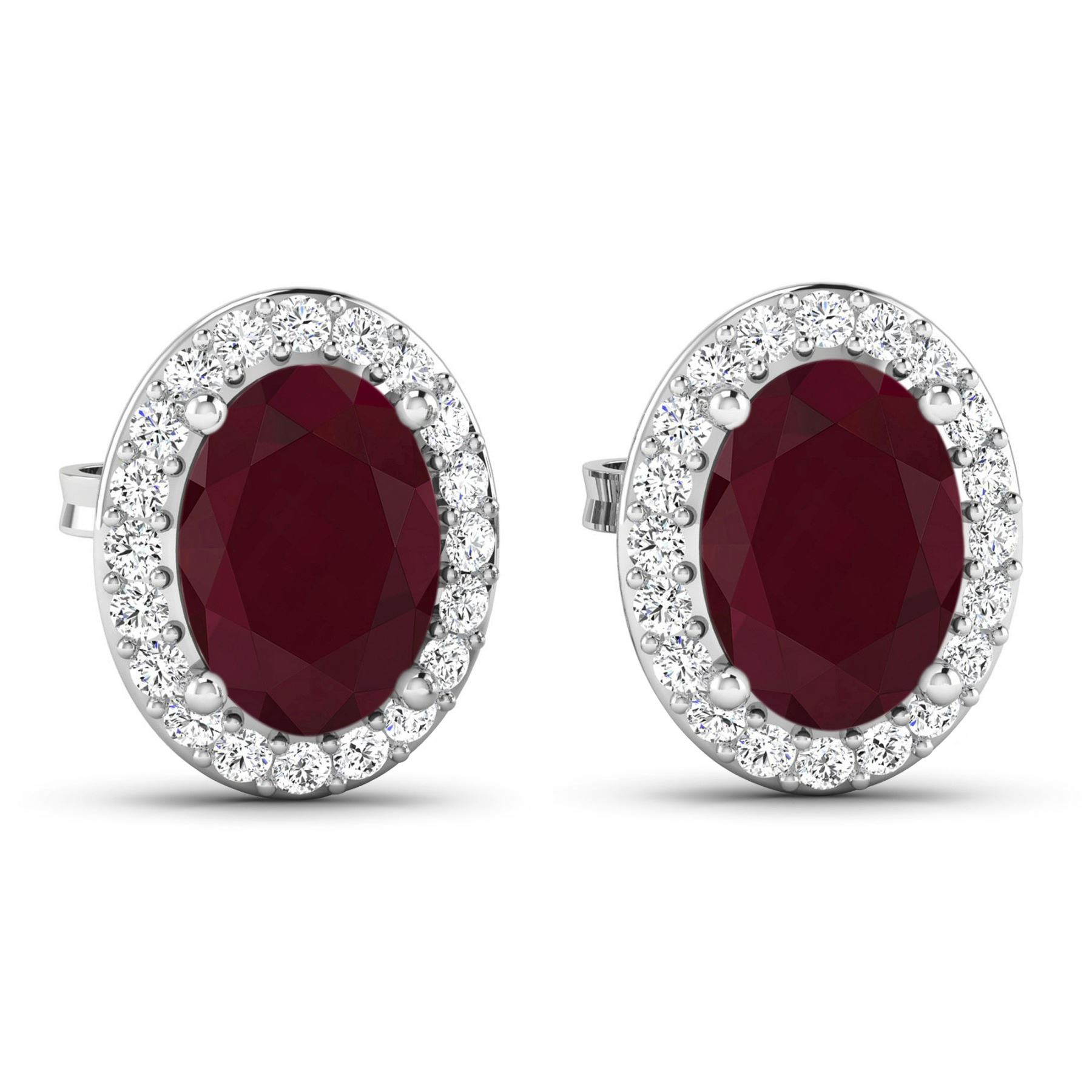 Ruby (AA) Oval 7x5mm - 2Pcs + White Diamond F/C Round 1.10mm - 40Pcs (I1-I2/I color) ( Push Post ) Total weight of gemstones is 1.7cts. Total Diamond weight is 0.26cts. Total weight of these earrings are 2.12 grams.