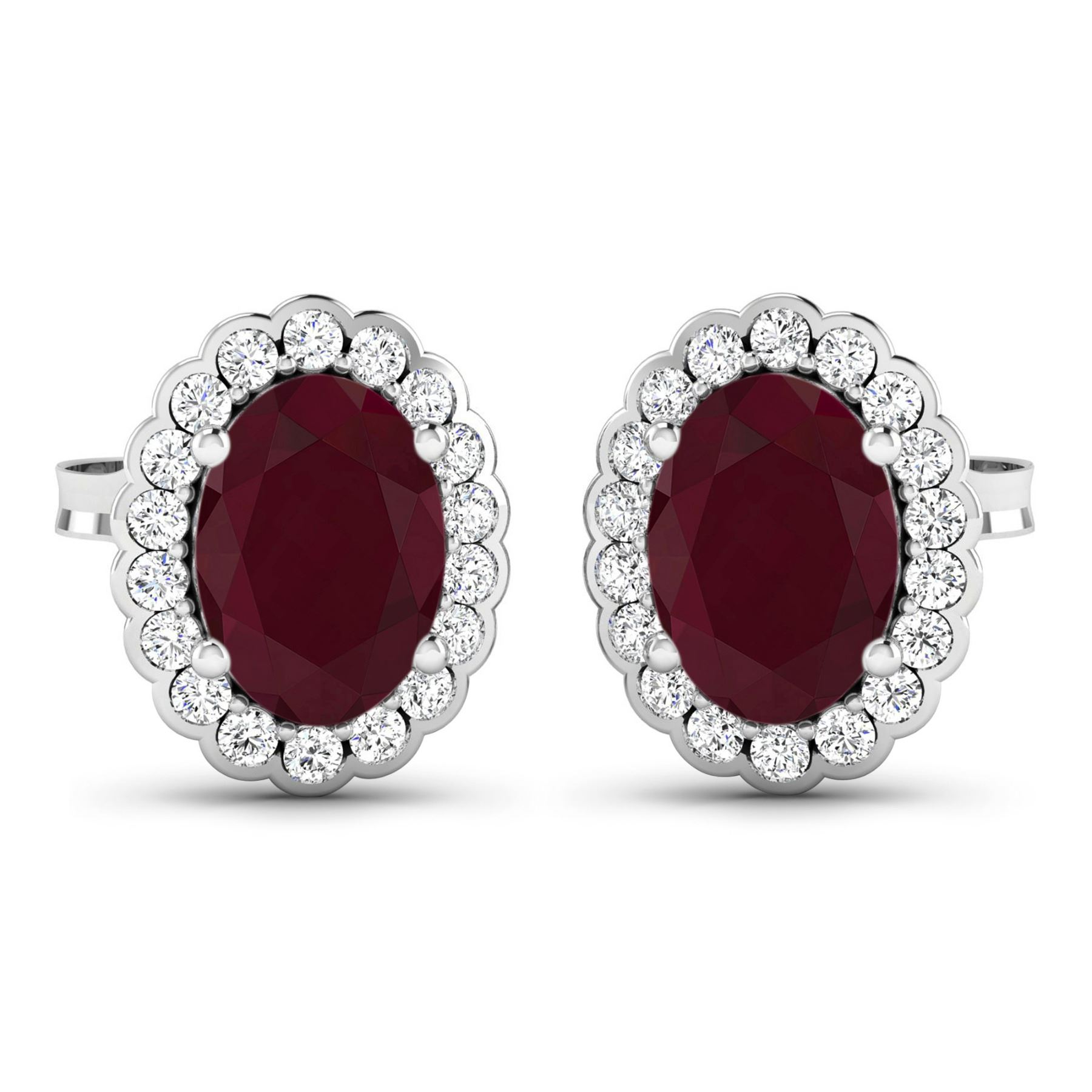 Ruby (AA) Oval 7x5mm - 2Pcs + White Diamond F/C Round 1.20mm - 36Pcs (I1-I2/I color) ( Push Post ) Total weight of gemstones is 1.7cts. Total Diamond weight is 0.28cts. Total weight of these earrings are 2.64 grams.