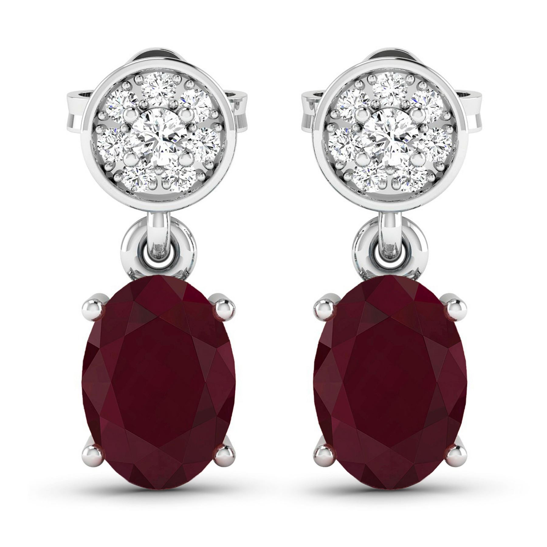 Ruby (AA) Oval 7x5mm - 2Pcs + White Diamond F/C Round 1.80mm - 2Pcs + White Diamond F/C Round 1.00mm - 14Pcs ( Push-Post ) ( I1-I2/I color ) Total weight of gemstones is 1.7cts. Total Diamond weight is 0.11cts. Total weight of these earrings are 2.01 grams.