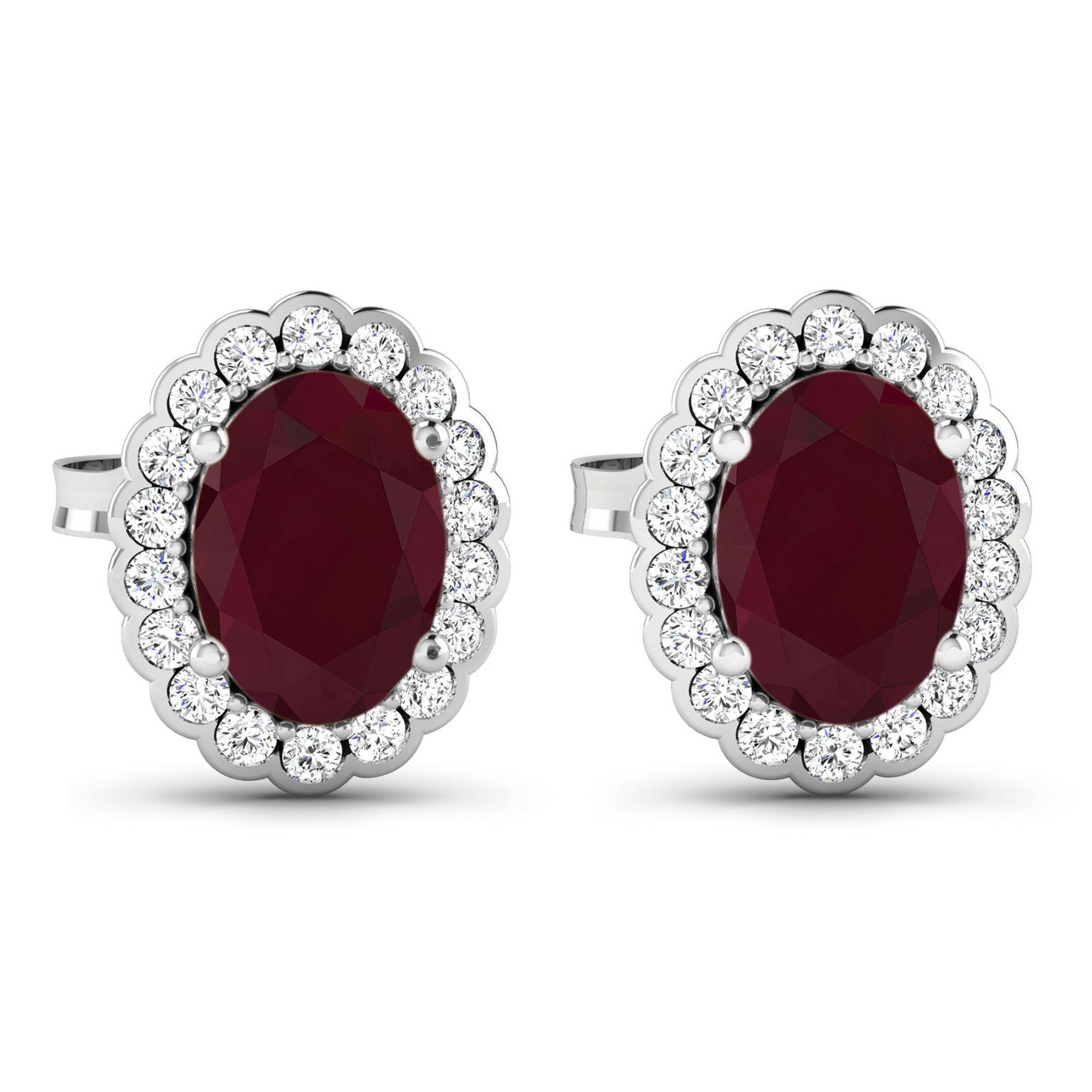 Ruby (AA) Oval 7x5mm - 2Pcs + White Diamond F/C Round 1.20mm - 36Pcs (I1-I2/I color) ( Push Post ) Total weight of gemstones is 1.7cts. Total Diamond weight is 0.28cts. Total weight of these earrings are 2.64 grams.