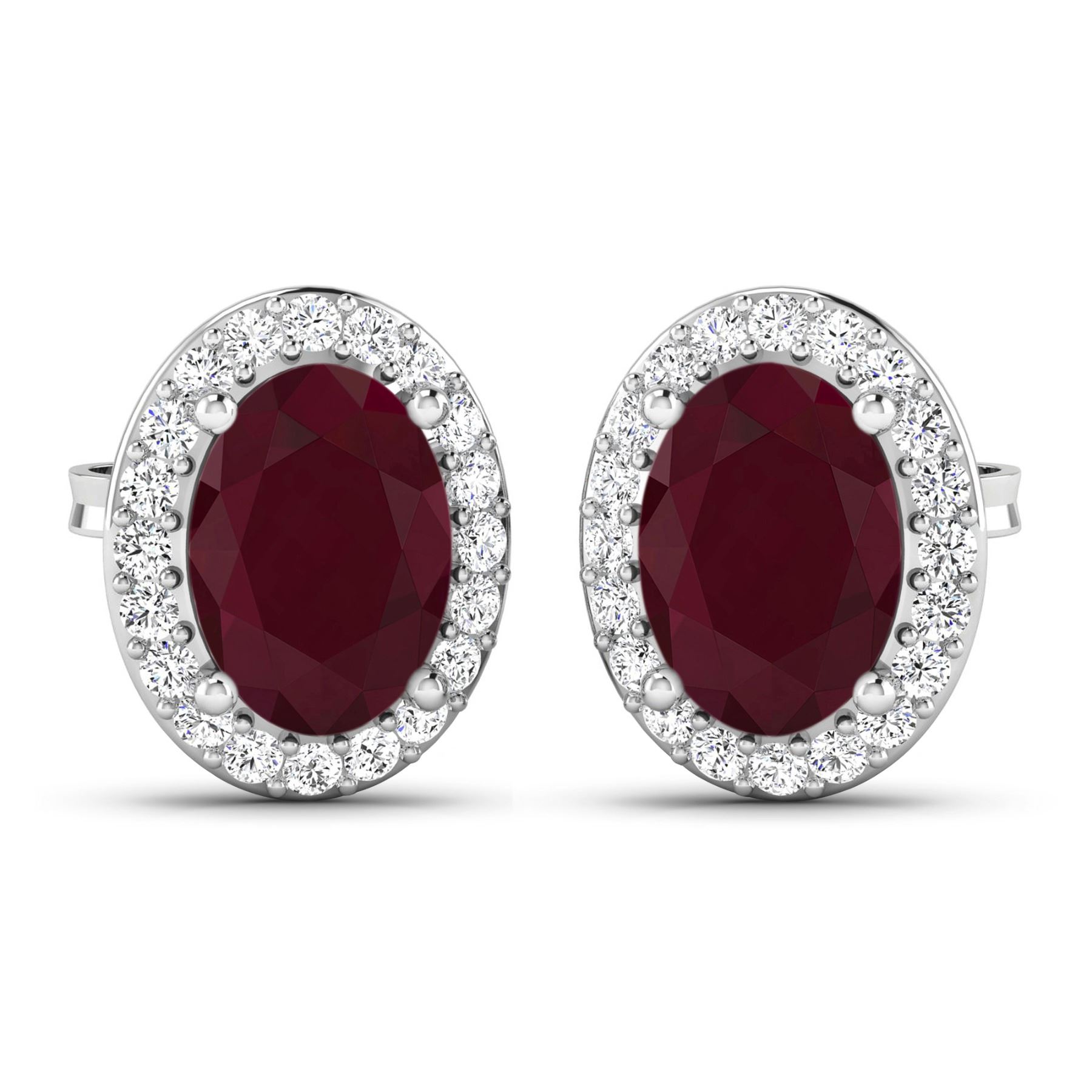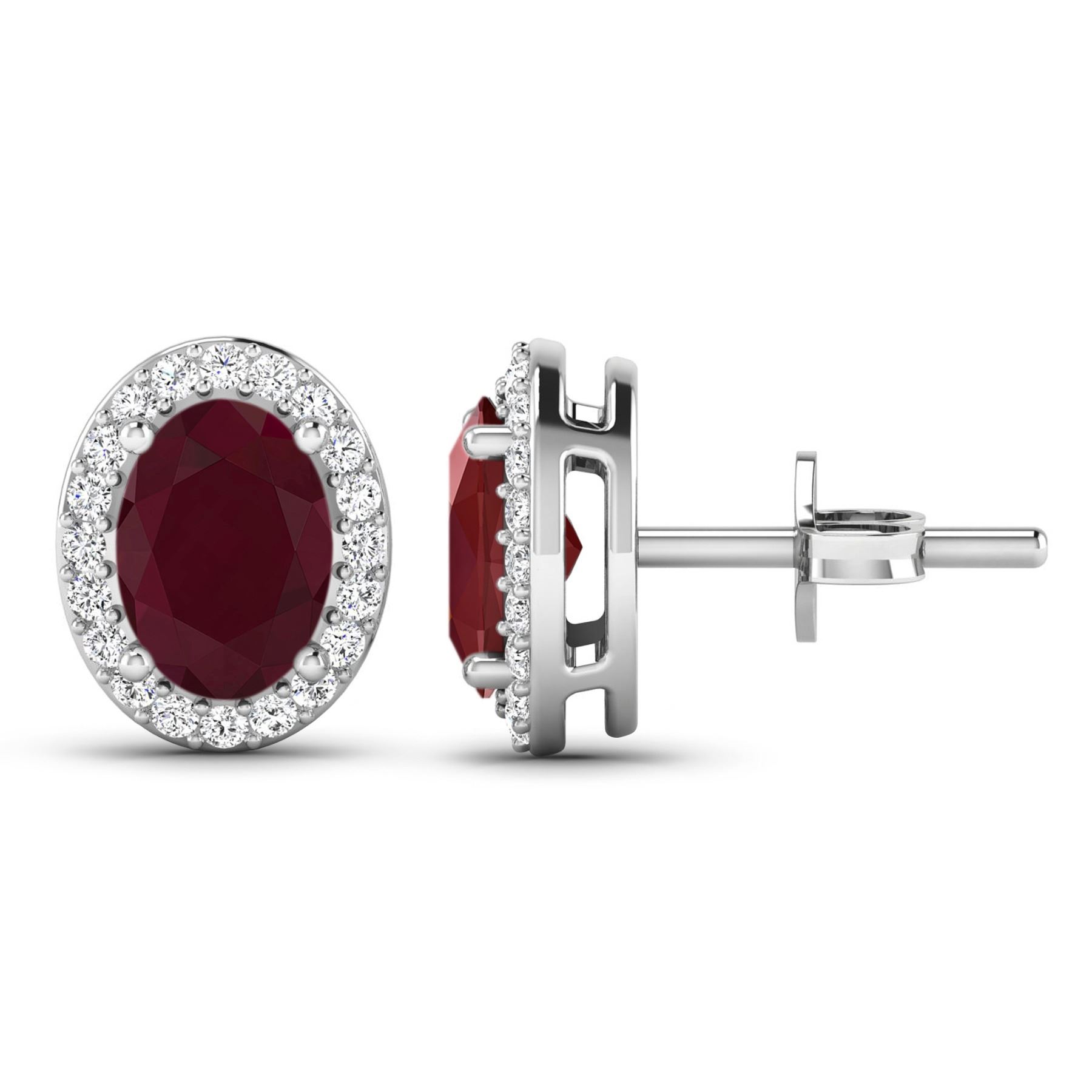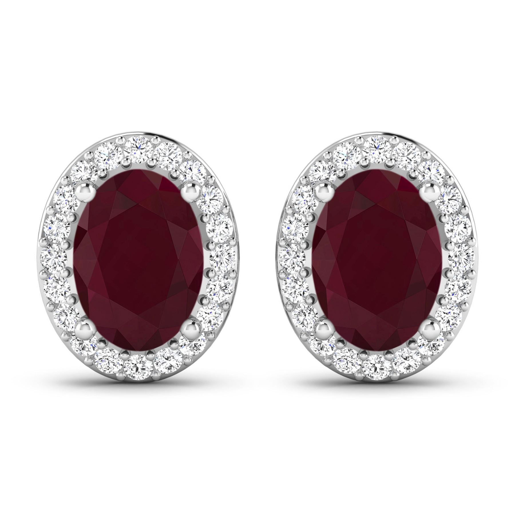 Ruby (AA) Oval 7x5mm - 2Pcs + White Diamond F/C Round 1.10mm - 40Pcs (I1-I2/I color) ( Push Post ) Total weight of gemstones is 1.7cts. Total Diamond weight is 0.26cts. Total weight of these earrings are 2.12 grams.