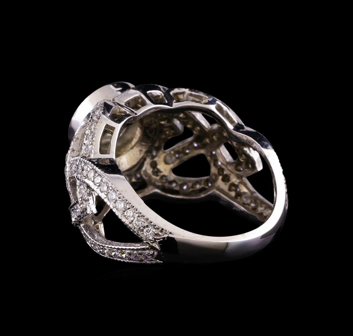 One electronically tested 14KT white gold ladies combination cast & assembled engagement ring with a flat shank with a bright polish finish. Identified with markings of "K14". Condition is new. Containing: One bezel set round brilliant cut diamond, measuring 6.50 - 6.50 x 4.00mm (depth est.) approximate weight of 1.03ct. Clarity: I-1. Color: K, Cut is Good. One Hundred Twenty-Four prong set round brilliant cut diamonds, measuring 1.20 - 1.20 x 0.72mm (depth est.) approximate total weight of 124 Stones = 0.78ct. Clarity: SI-2 to I-1. Color: I - J, Cut is Good. All diamonds are graded in the mounting, unless otherwise stated. Total Weight of Diamonds 1.81ct. Total Weight of Ring 8.80 grams. GGL Appraised at $14,515.00.