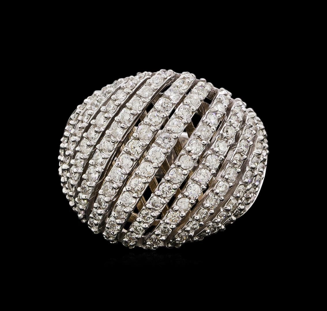 One electronically tested 14KT white gold ladies cast diamond ring with a bright polish finish. Identified with markings of "585". Condition is new. Containing: One Hundred Forty-Eight prong set round brilliant cut diamonds, measuring 1.50 - 1.50 x 0.90mm (depth est.) approximate total weight of 148 Stones = 1.82ct. Clarity: SI-2 to I-1. Color: H - I, Cut is Good. All diamonds are graded in the mounting, unless otherwise stated. Total Weight of Diamonds 1.82ct. Total Weight of Ring 11.90 grams. GGL Appraised at $4,835.00.