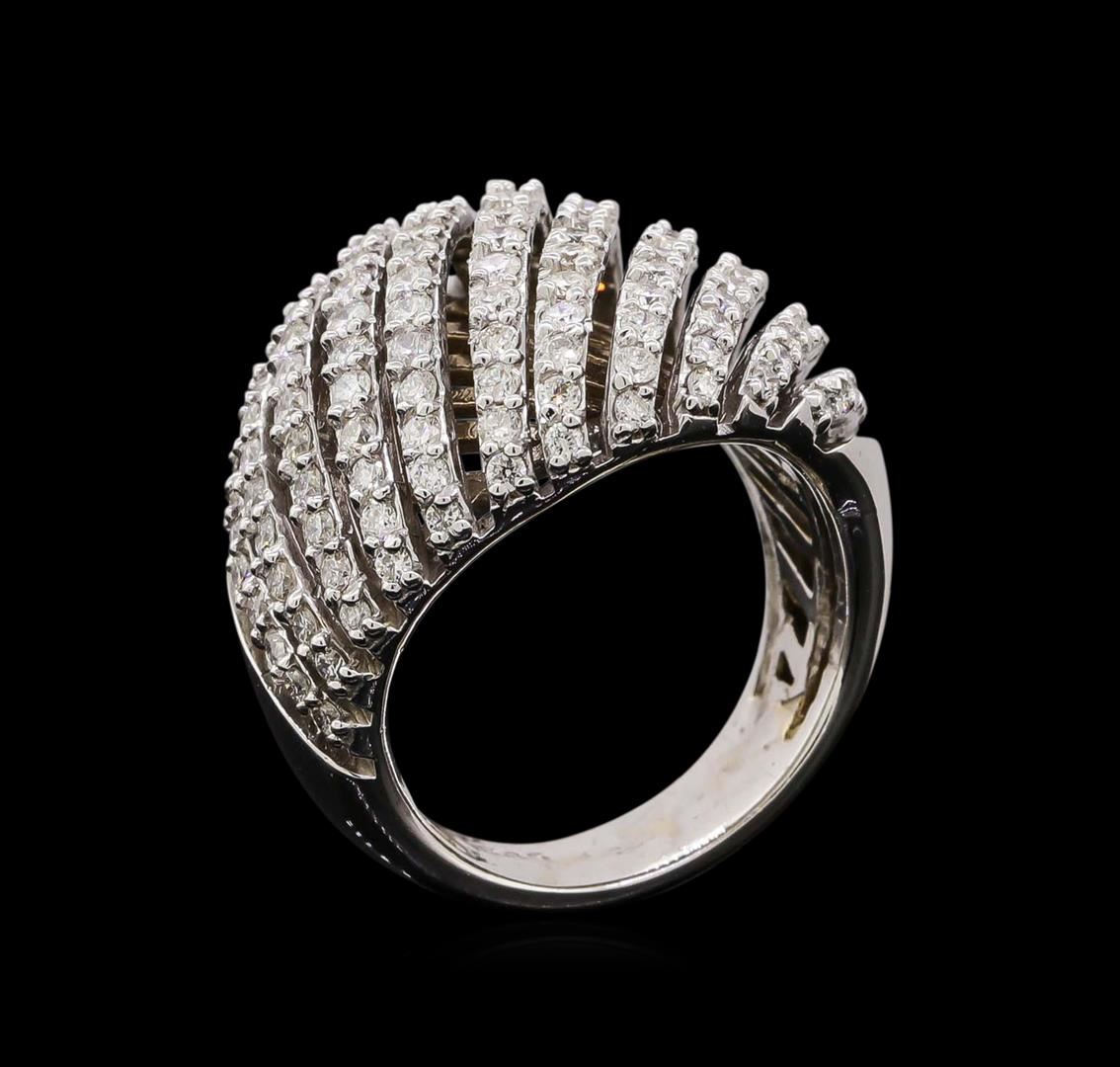 One electronically tested 14KT white gold ladies cast diamond ring with a bright polish finish. Identified with markings of "585". Condition is new. Containing: One Hundred Forty-Eight prong set round brilliant cut diamonds, measuring 1.50 - 1.50 x 0.90mm (depth est.) approximate total weight of 148 Stones = 1.82ct. Clarity: SI-2 to I-1. Color: H - I, Cut is Good. All diamonds are graded in the mounting, unless otherwise stated. Total Weight of Diamonds 1.82ct. Total Weight of Ring 11.90 grams. GGL Appraised at $4,835.00.