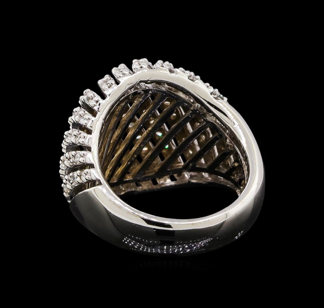 One electronically tested 14KT white gold ladies cast diamond ring with a bright polish finish. Identified with markings of "585". Condition is new. Containing: One Hundred Forty-Eight prong set round brilliant cut diamonds, measuring 1.50 - 1.50 x 0.90mm (depth est.) approximate total weight of 148 Stones = 1.82ct. Clarity: SI-2 to I-1. Color: H - I, Cut is Good. All diamonds are graded in the mounting, unless otherwise stated. Total Weight of Diamonds 1.82ct. Total Weight of Ring 11.90 grams. GGL Appraised.