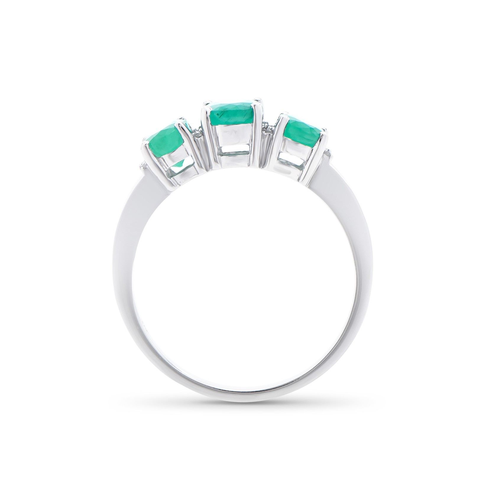 (1) Emerald with a total weight of 1.05cts. (2) Emeralds with a total weight of 0.80cts. (14) round Diamonds with a total weight of 0.07cts with a color of H-I and clarity of I2-I3. Total weight of the ring is 3.80 grams. Ring size 7.5.