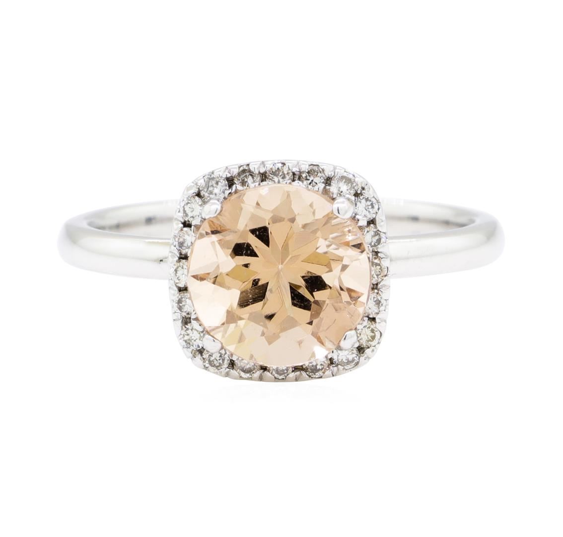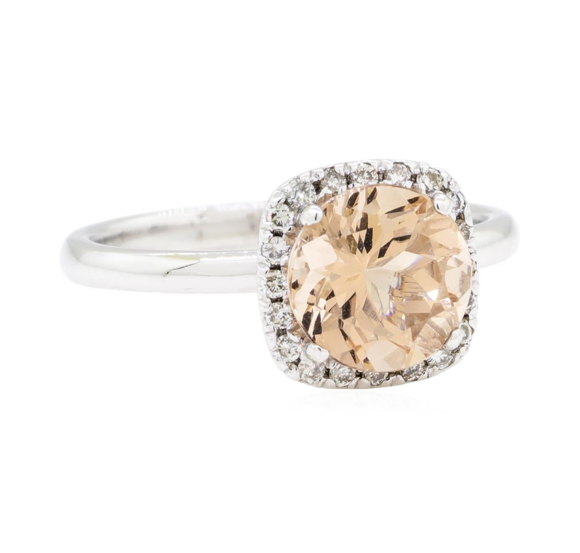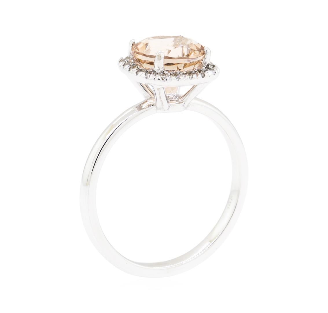 One ring featuring: 14KT white gold weighing 3.0 grams containing one morganite weighing 1.87ct and diamonds weighing 0.15ctw. The ring is a size 6.5.