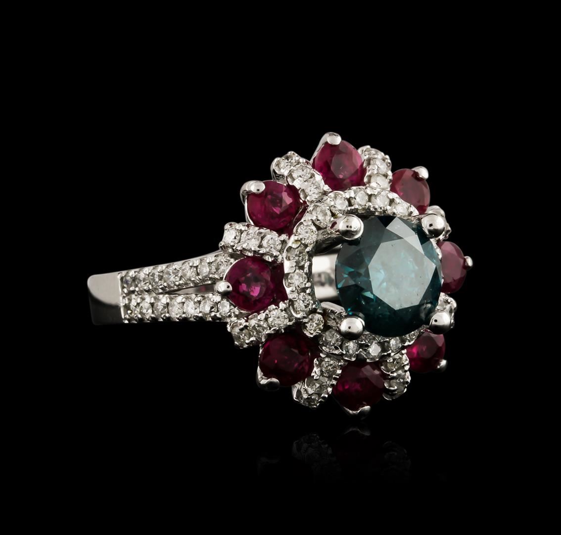 14KT White Gold 1.89ctw Fancy Blue Diamond and Ruby Ring