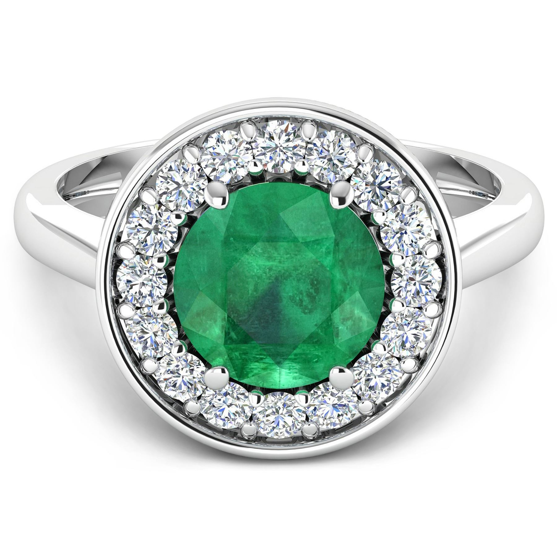 Zambian Emerald (AA) Round 8.00mm - 1Pc + White Diamond F/C Round 2.00mm - 16Pcs ( Diamond Quality : SI-2/HI ). Total weight of gemstone is 1.8cts. Total weight of Diamonds is 0.48cts. Total weight of this ring is 4.19 grams. Ring size 7.
