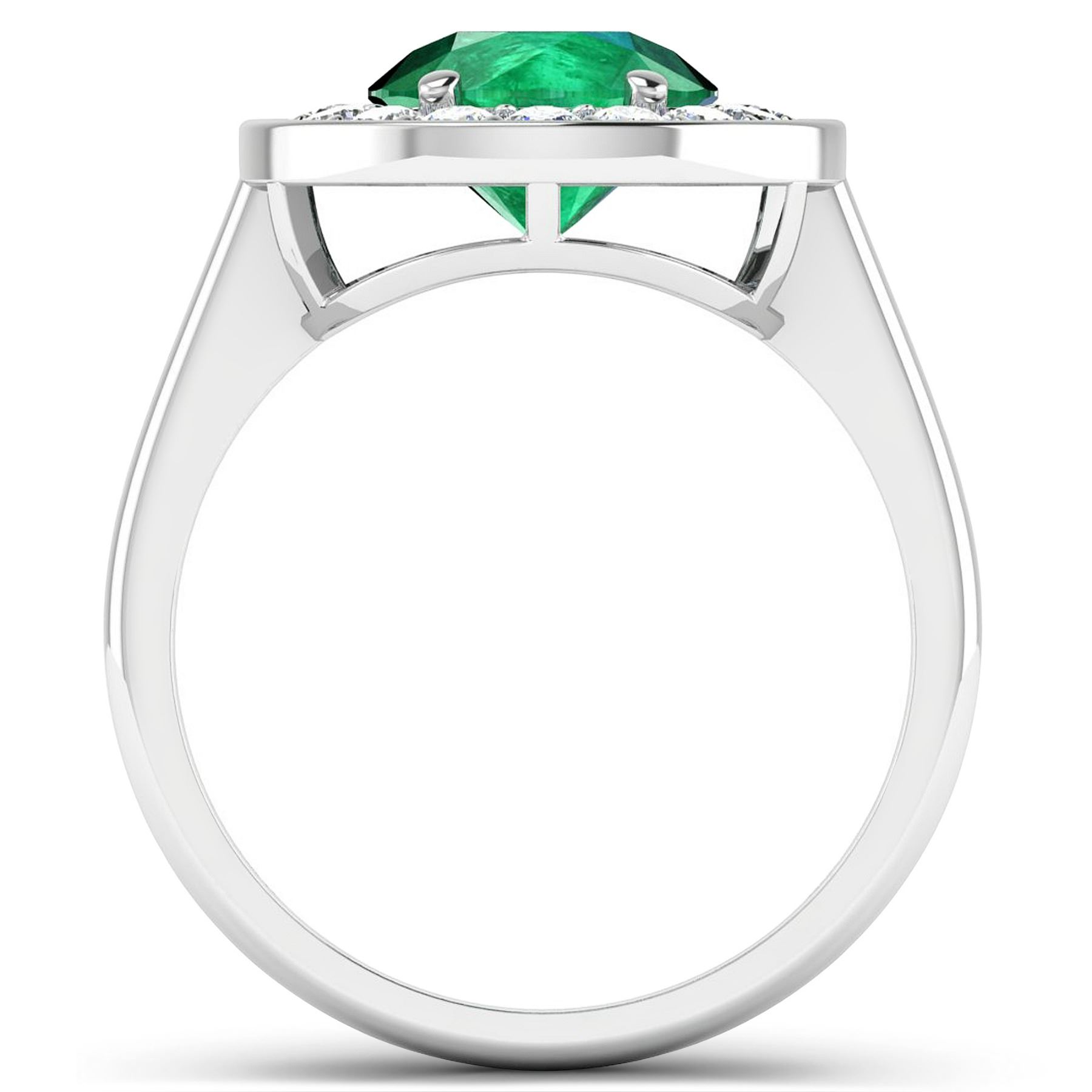 Zambian Emerald (AA) Round 8.00mm - 1Pc + White Diamond F/C Round 2.00mm - 16Pcs ( Diamond Quality : SI-2/HI ). Total weight of gemstone is 1.8cts. Total weight of Diamonds is 0.48cts. Total weight of this ring is 4.19 grams. Ring size 7.
