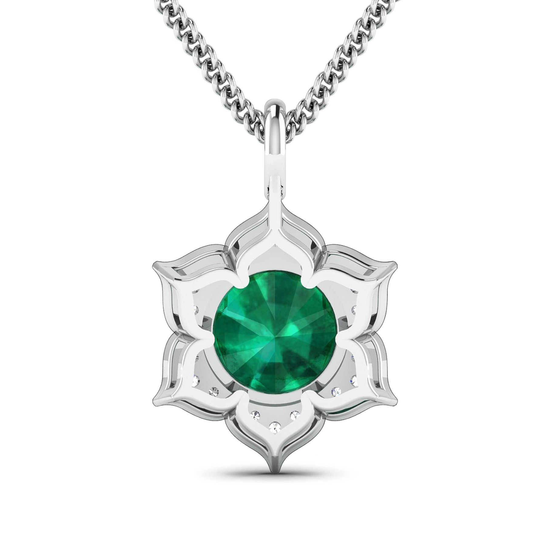 Zambian Emerald (AA) Round 8.00mm - 1Pc + White Diamond F/C Round 1.30mm - 6Pcs + White Diamond F/C Round 1.10mm - 12Pcs ( SI2/HI color ) Total weight of gemstone is 1.8cts. Total Diamond weight is 0.14cts. Total weight of this pendant is 1.97 grams.