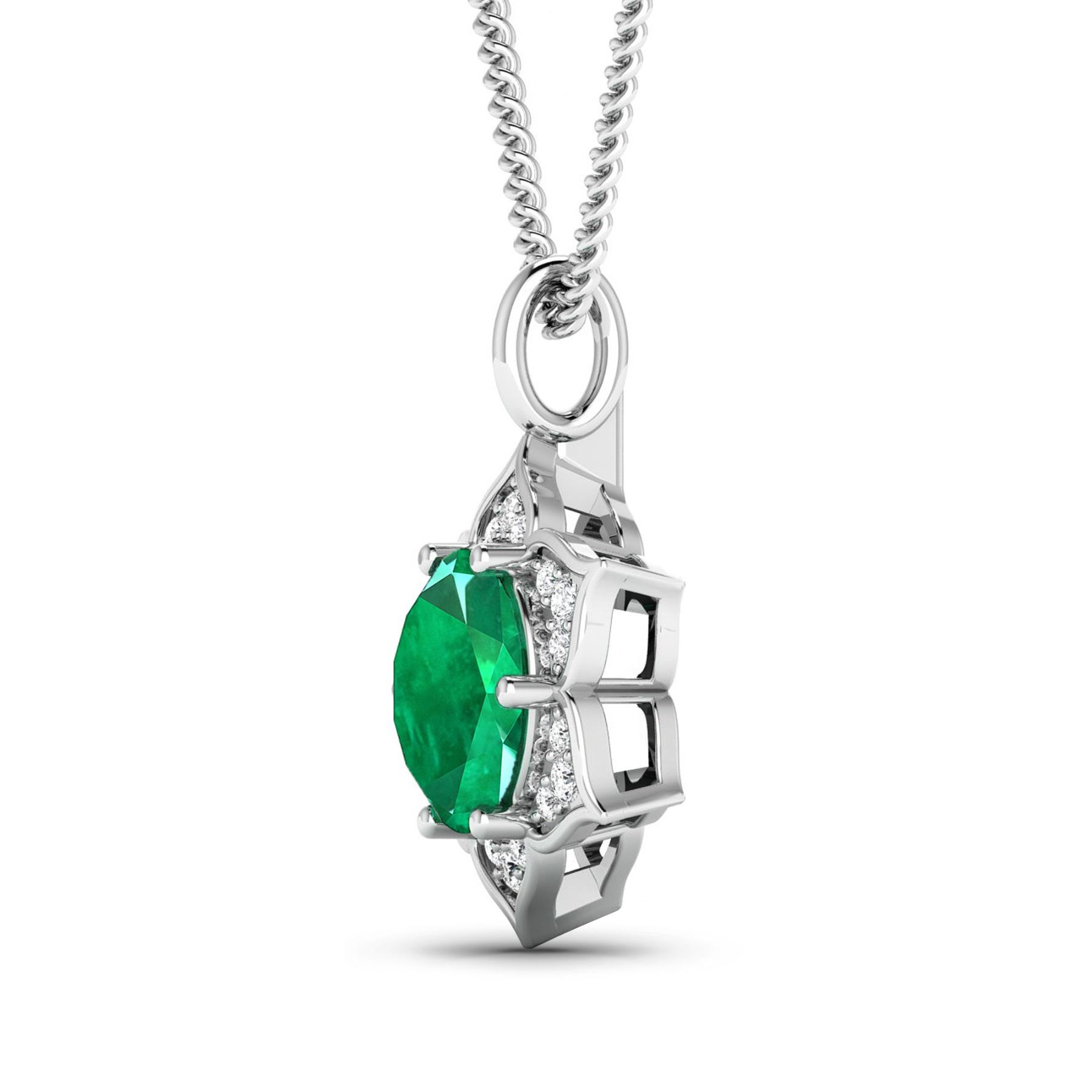 14KT White Gold 1.8ctw Zambian Emerald and Diamond Pendant