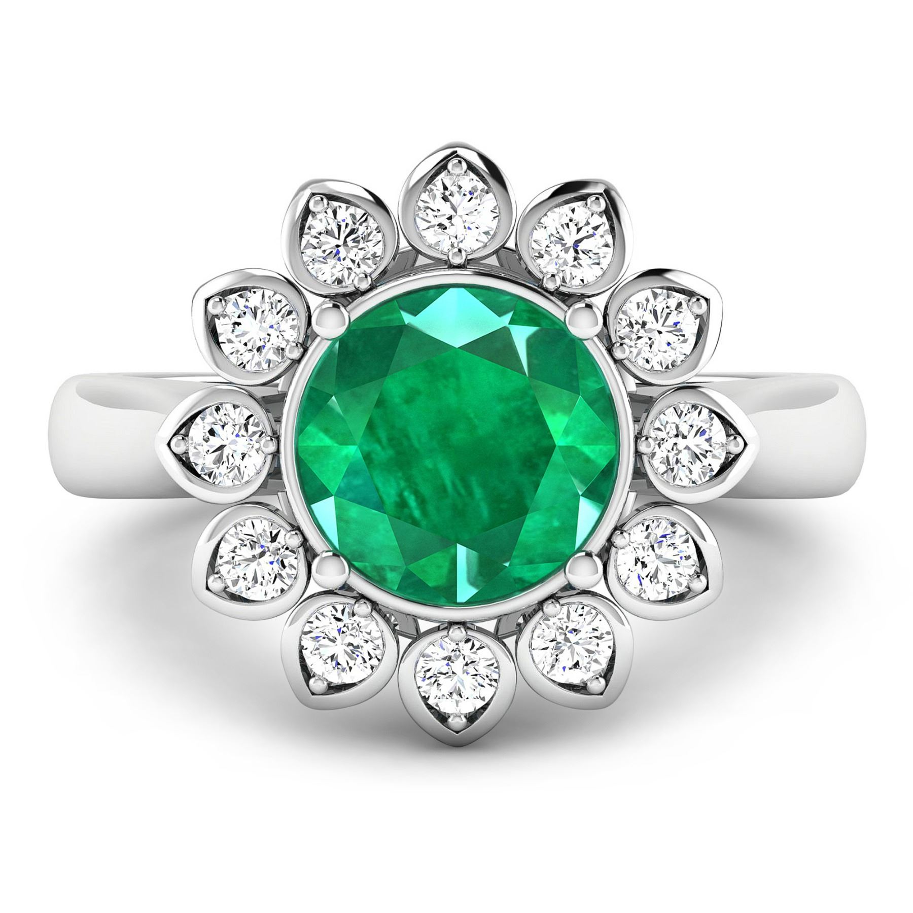 Zambian Emerald (AA) Round 8.00mm - 1Pc + White Diamond F/C Round 2.00mm - 12Pcs ( SI-2/HI ) Total weight of gemstone is 1.8cts. Total Diamond weight is 0.36cts. Total weight of this ring is 3.29 grams. Ring size 7.