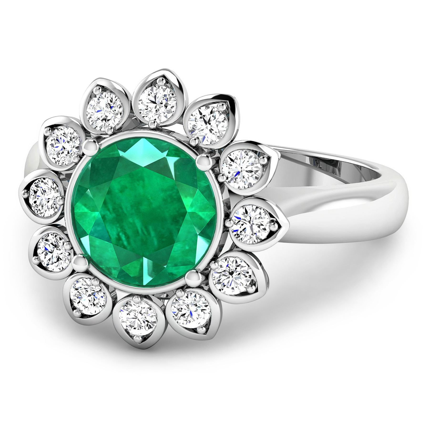Zambian Emerald (AA) Round 8.00mm - 1Pc + White Diamond F/C Round 2.00mm - 12Pcs ( SI-2/HI ) Total weight of gemstone is 1.8cts. Total Diamond weight is 0.36cts. Total weight of this ring is 3.29 grams. Ring size 7.