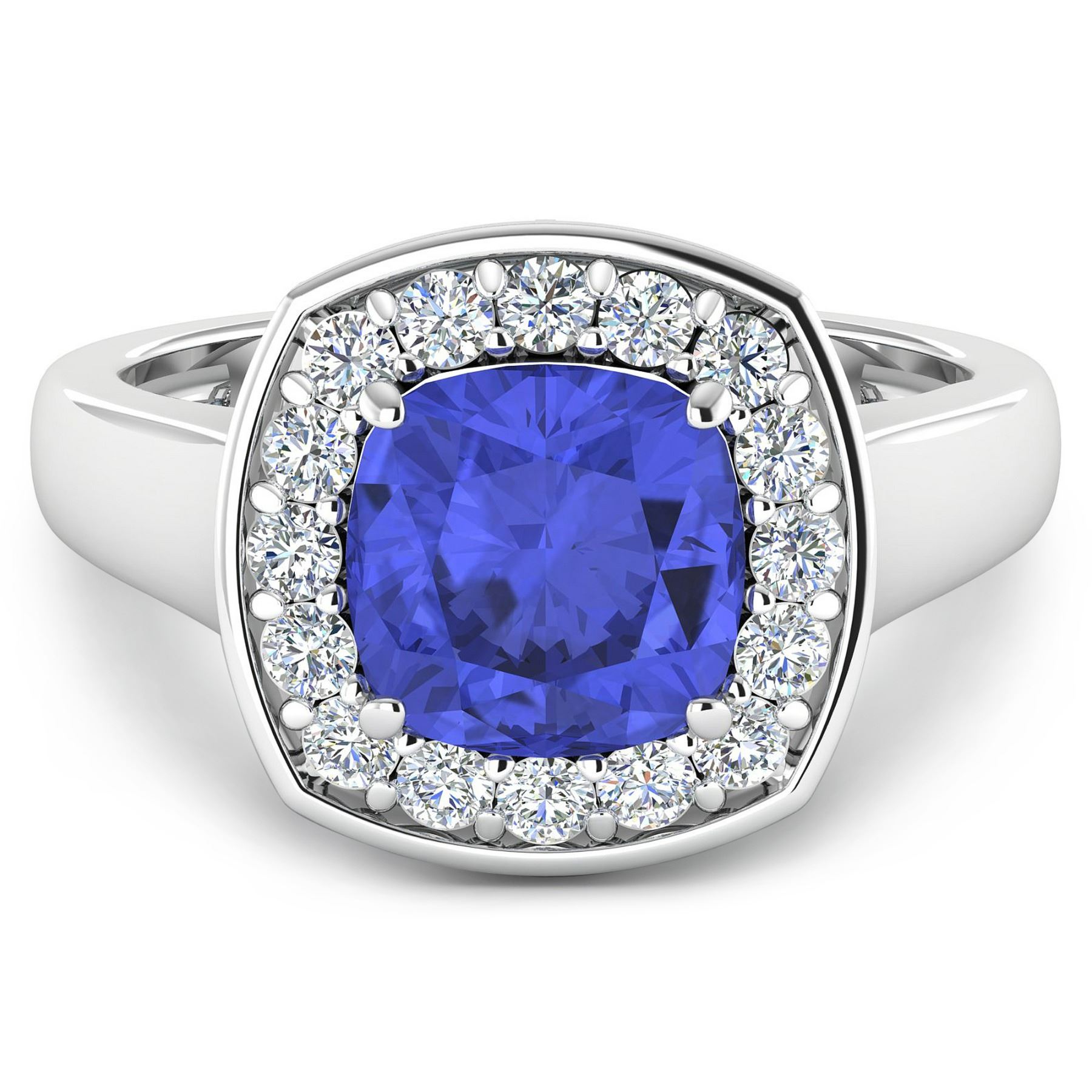 Tanzanite (AA+) Cushion 8.00mm - 1Pc + White Diamond F/C Round 2.00mm - 16Pcs ( Diamond Quality : SI-2/HI ). Total weight of gemstone is 1.99cts. Total weight of Diamonds is 0.48cts. Total weight of this ring is 3.72 grams. Ring size 7.