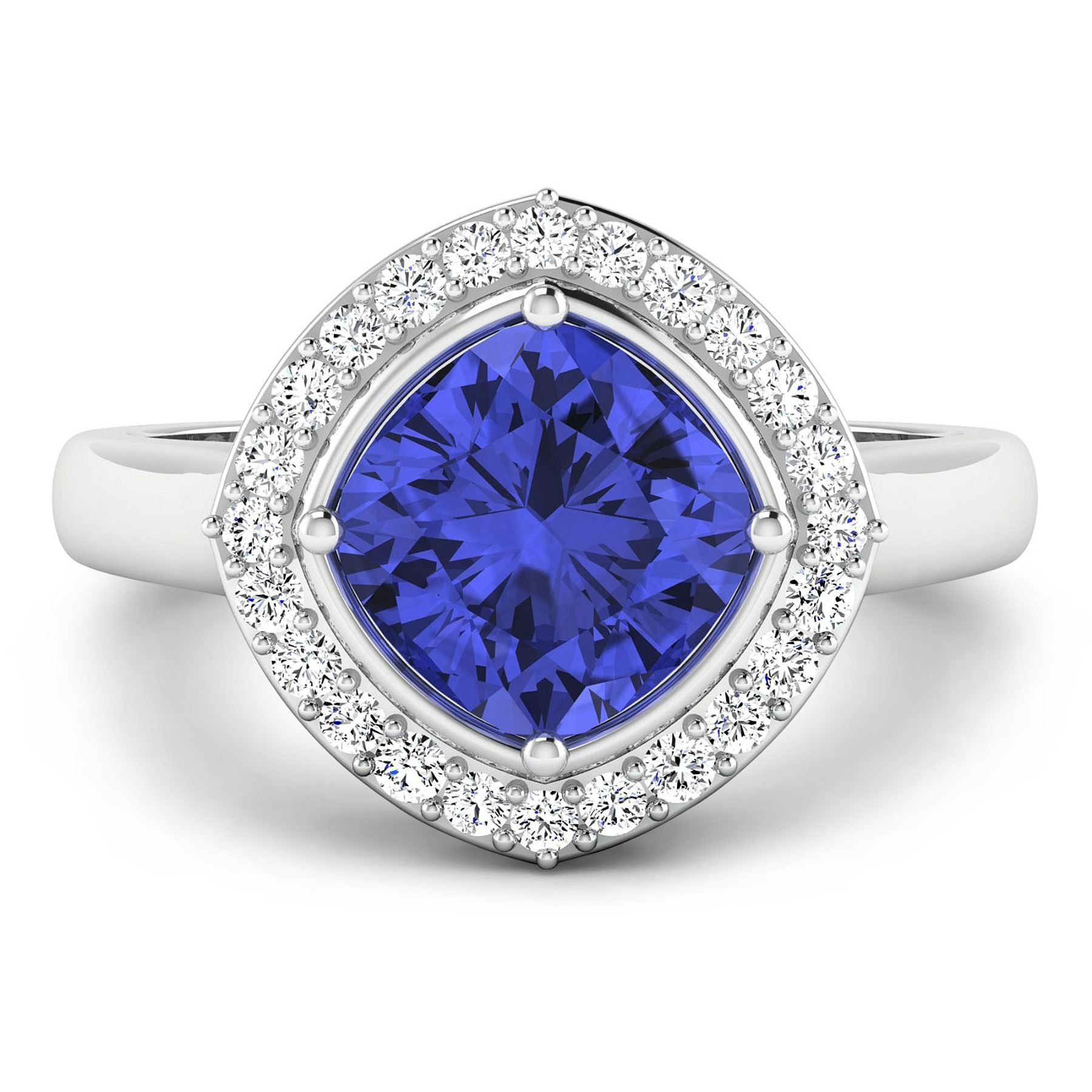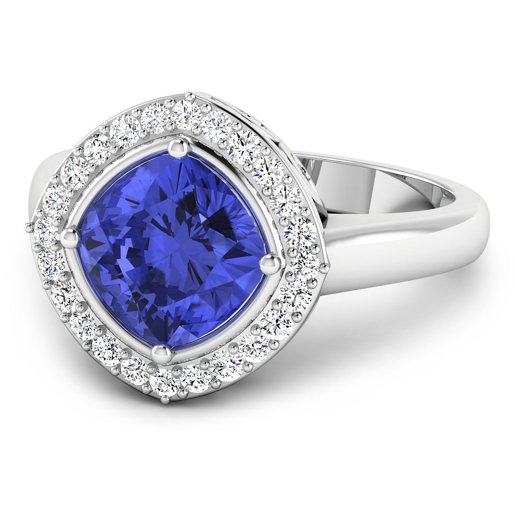 Tanzanite (AA+) Cushion 8.00mm - 1Pc + White Diamond F/C Round 1.30mm - 24Pcs ( SI-2/HI ) Total weight of gemstone is 1.99cts. Total Diamond weight is 0.24cts. Total weight of this ring is 3.3 grams. Ring size 7.