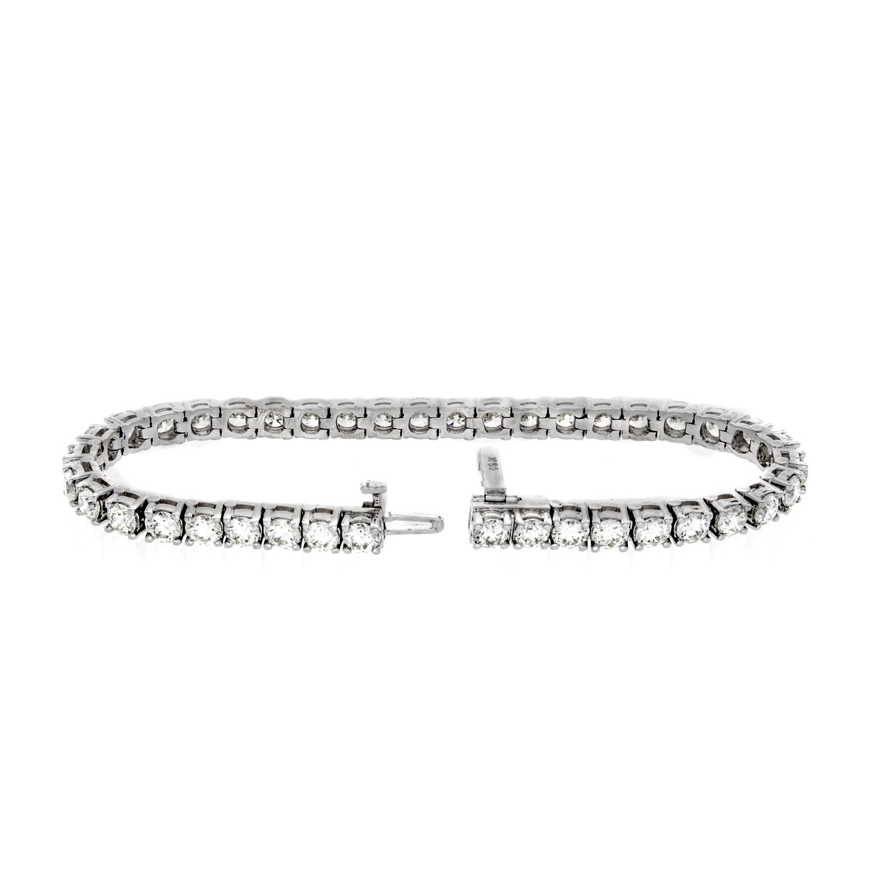 One 14KT White Gold 10.00ctw Diamond Tennis Bracelet. (40) Round Diamonds with a total weight of 10.00cts with a color of I-J and clarity of VS-2 to SI-2.