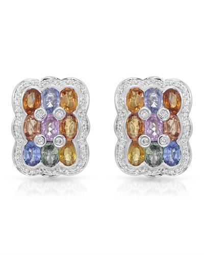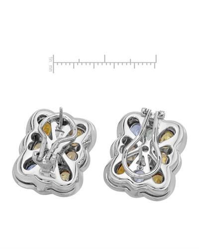 14KT White Gold 10.01ctw Multi Color Sapphire and Diamond Earrings. (18) Multi color sapphires with a total weight of 10.01cts. (104) Round Diamonds with a total weight of 0.68cts with a color of I and clarity of I-1. Measuring 23mm x 17mm. Total weight of these earrings are 17.72 grams.