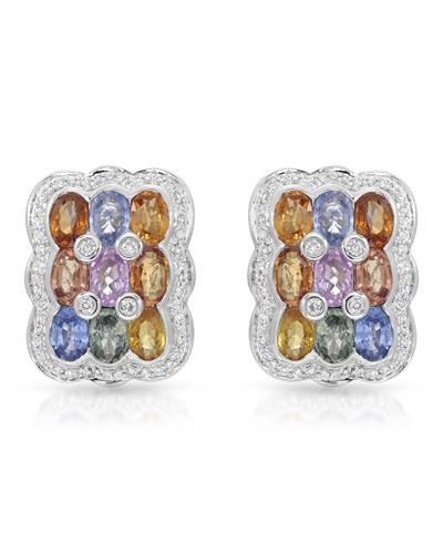 14KT White Gold 10.01ctw Multi Color Sapphire and Diamond Earrings. (18) Multi color sapphires with a total weight of 10.01cts. (104) Round Diamonds with a total weight of 0.68cts with a color of I and clarity of I-1. Measuring 23mm x 17mm. Total weight of these earrings are 17.72 grams.