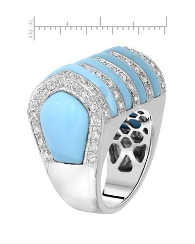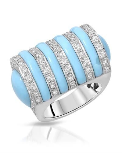 14KT White Gold 10.06ctw Turquoise and Diamond Ring. (6) Turquoise stones with a total weight of 10.06cts. (80) round Diamonds with a total weight of 1.31cts with a color of I and clarity of I-1. Total weight of this ring is 17.58 grams.