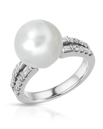 One 14KT White Gold 10.23ct Pearl and Diamond Ring. (1) Pearl with a total weight of 10.23cts. (16) round Diamonds with a total weight of 0.42cts with a color of I and clarity of I-1. Total weight of this ring is 4.5 grams.
