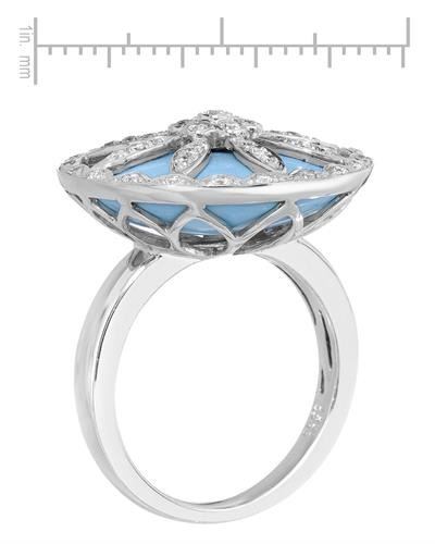 14KT White Gold 10.43ct Turquoise and Diamond Ring. (1) Turquoise stone with a total weight of 10.43cts. (51) round Diamonds with a total weight of 0.45cts with a color of I and clarity of I-1. Total weight of this ring is 6.25 grams.