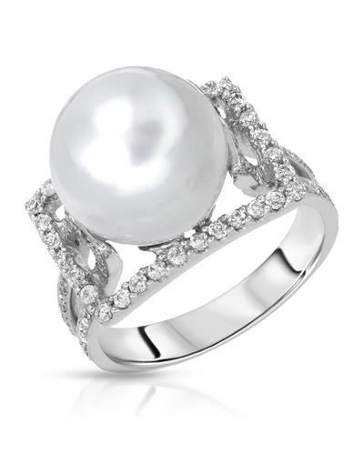 One 14KT White Gold 11.09ct Pearl and Diamond Ring. (1) Pearl with a total weight of 11.09cts. (74) round Diamonds with a total weight of 0.52cts with a color of I and clarity of I-1. Total weight of this ring is 4.34 grams.