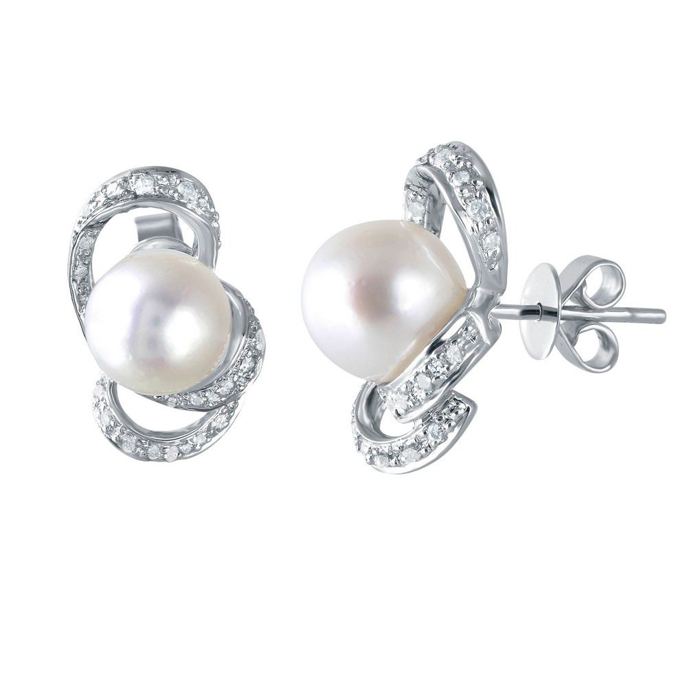 One 14KT White Gold 12.30ctw Pearl and Diamond Earrings. (2) Pearls with a total weight of 12.30cts. (42) Diamonds with a total weight of 0.41cts. Total weight of these earrings are 4.17 grams.