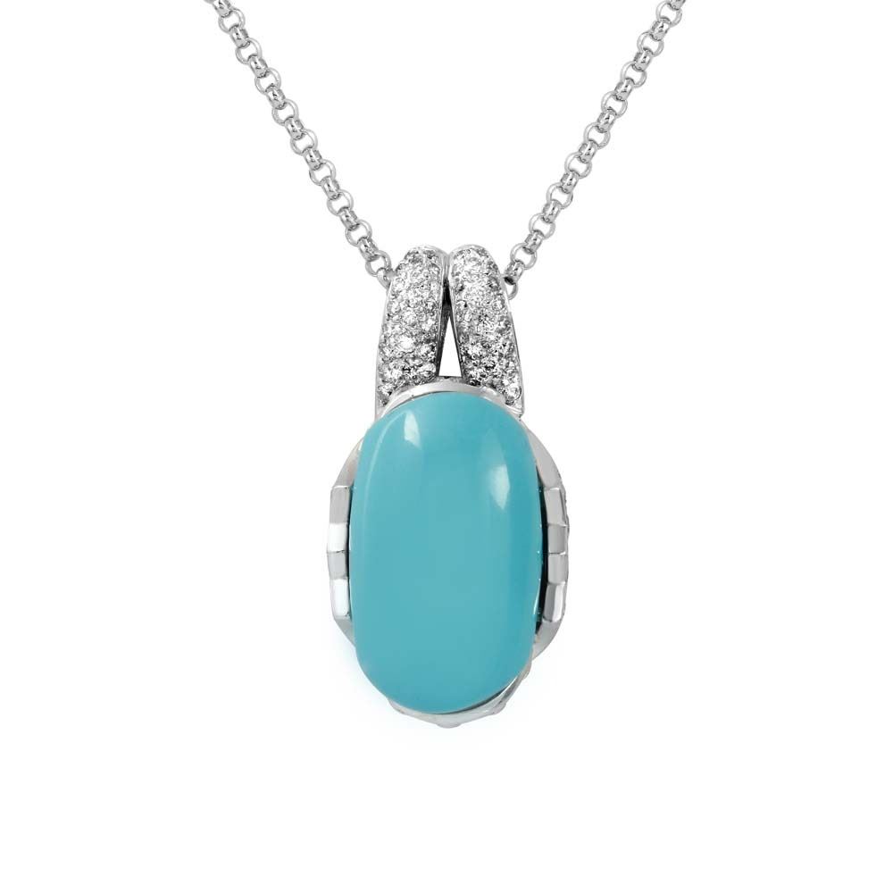 14KT White Gold 13.00ct Turquoise and Diamond Pendant with Chain