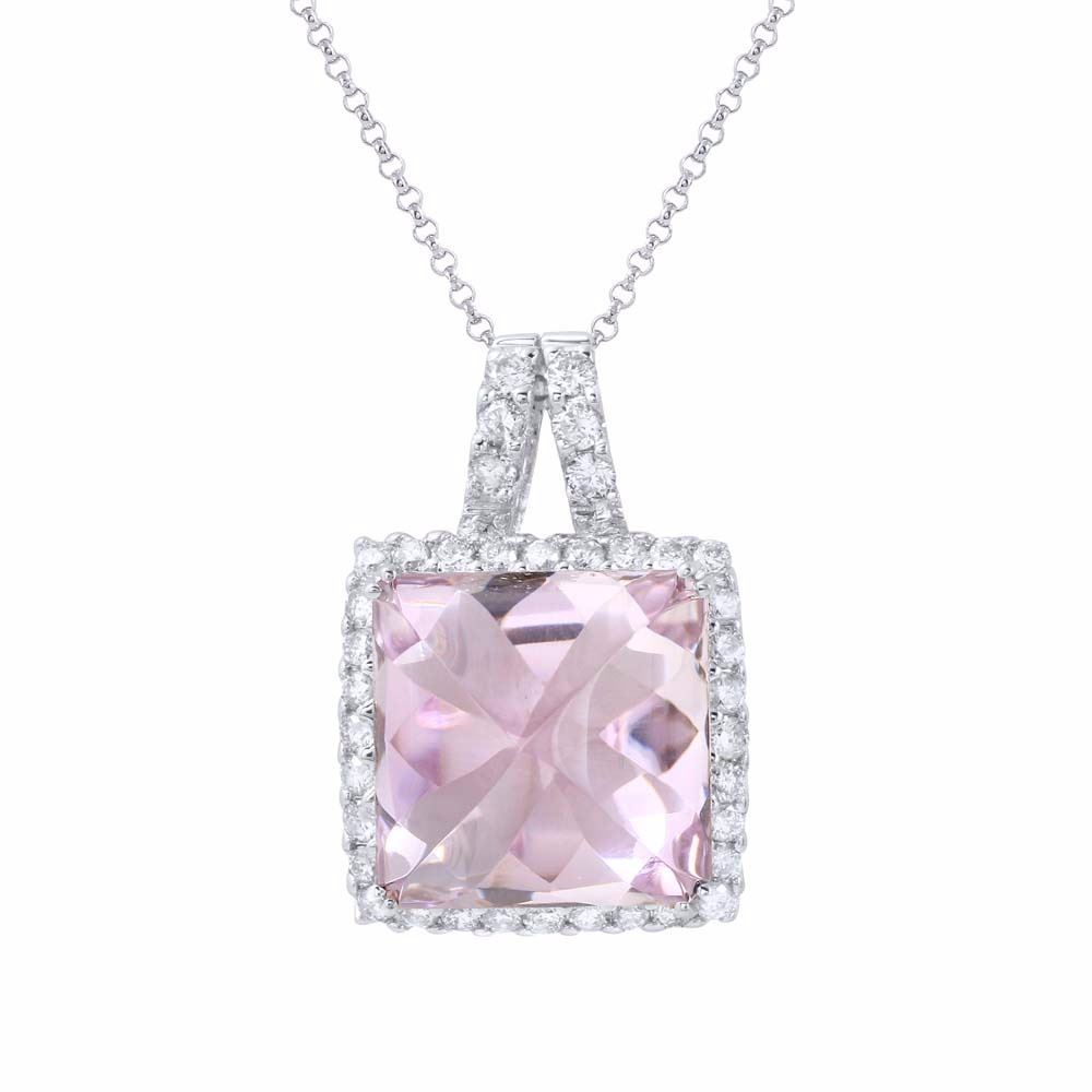 14KT White Gold 13.28ct Amethyst and Diamond Pendant with Chain