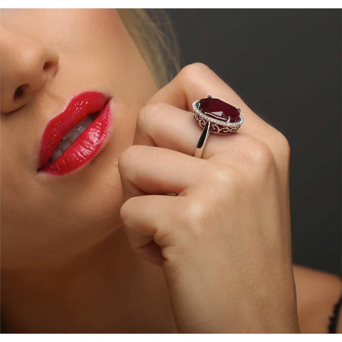 One electronically tested 14KT white gold ladies combination cast & assembled ruby and diamond ring with a flat shank with a bright polish finish. Identified with markings of "14K". Condition is new. Containing: One prong set oval modified brilliant cut natural ruby, measuring 16.96 x 13.60 x 8.15mm, approximate weight of 15.22ct., clarity is heavily included, type II, medium dark, moderately strong, strongly purplish red color, (GIA stpR 6/4), cut is good. Forty-Four prong set round brilliant cut diamonds, measuring 1.00 - 1.00 x 0.60mm (depth est.) stated total weight of 44 Stones = 0.16ct. Clarity: I-1 to I-2. Color: I - J, Cut is Good. Colored gemstones are presumed to have been subjected to commonly used enhancement processes. All diamonds and colored gemstones are graded in the mounting, unless otherwise stated total weight of Colored Stones 15.22ct. Total Weight of Diamonds 0.16ct. Total Weight of Ring 9.80 grams. GGL Appraised at $8,195.00.