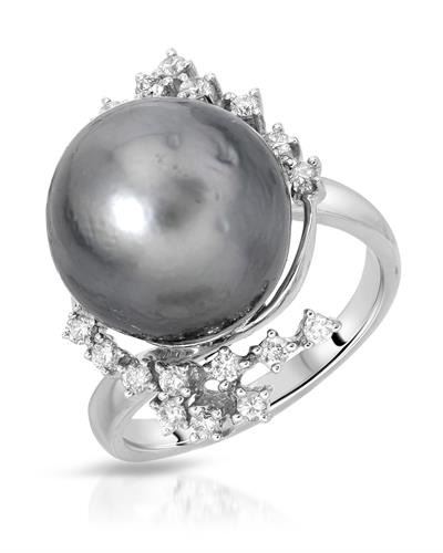 One 14KT White Gold 15.88ct Tahitian Pearl and Diamond Ring. (1) Tahitian Pearl with a total weight of 15.88cts. (17) Diamonds with a total weight of 0.32cts with a color of I and clarity of I-1. Total weight of this ring is 3.86 grams.